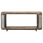 This industrial-styled wooden TV cabinet featuring ample storage space is meant to be the focal point of your living room or entertainment area. This TV stand is made of solid mango wood, which is tropical hardwood. It has the strength to bear the weight and also stand the wear and tear of time. The exquisite craftsmanship and beautiful wood grains make every piece of stereo cabinet slightly different from the next. This lowboard features a large open compartment, providing ample storage space to keep your DVDs, multimedia appliances, books and small essential items organised and within reach. Important note: The colours vary from piece to piece, making each piece unique; the delivery is random.