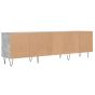This TV cabinet with ample storage space is a practical and eye-catching addition to your living room or bedroom. Sturdy material: The engineered wood is of exceptional quality with smooth surface and also features strength, stability and resistance to moisture. Made of engineered wood, the TV stand is easy to clean with a damp cloth.Ample storage space: This TV bench has 6 compartments, offering ample storage space to keep your magazines, books, DVDs, and multimedia devices well organised and within reach.Stable tabletop: The stable tabletop of the TV sideboard is perfect for placing your books, cups and other decorative items.Iron legs: The iron legs of the TV stand cabinet ensure sturdiness and stability.