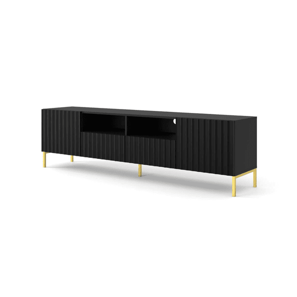 TV Cabinet - CONFREY TV Unit with 2 Drawer Black 200cm