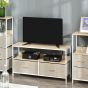 TV Cabinet, TV Console Unit with 2 Foldable Linen Drawers, TV Stand with Shelving for Living Room, Entertainment Room, Maple Wood Effect