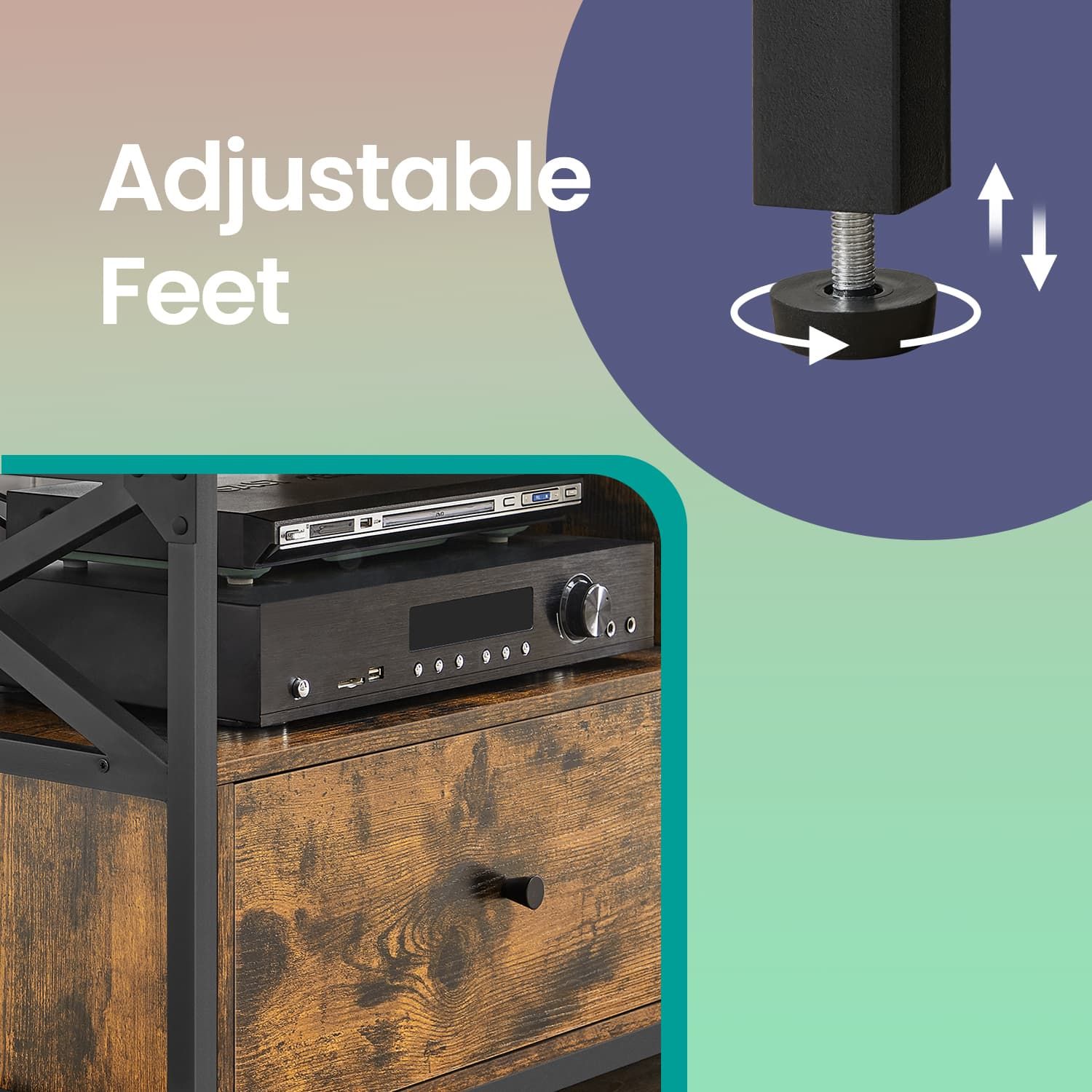 Elevate your living room with this stylish VASAGLE TV Stand, designed for TVs up to 55 inches. Crafted from durable particleboard and a sturdy steel frame in rustic brown and black, it offers a blend of industrial charm and practicality. Featuring two drawers and two open shelves, it provides ample storage for media accessories. Organize your entertainment space with this chic and functional TV unit.