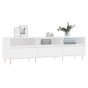 This TV cabinet with ample storage space is a practical and eye-catching addition to your living room or bedroom. Sturdy material: The engineered wood is of exceptional quality with smooth surface and also features strength, stability and resistance to moisture. Made of engineered wood, the TV stand is easy to clean with a damp cloth.Ample storage space: This TV bench has 6 compartments, offering ample storage space to keep your magazines, books, DVDs, and multimedia devices well organised and within reach.Stable tabletop: The stable tabletop of the TV sideboard is perfect for placing your books, cups and other decorative items.Iron legs: The iron legs of the TV stand cabinet ensure sturdiness and stability.