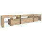 Featuring a trendy yet practical design, this TV cabinet with LED lights definitely becomes a focal point of your room. Practical material: The engineered wood is of exceptional quality with smooth surface and also features strength, stability and resistance to moisture. Colourful LED lights: The TV stand features RGB LED lights, which has different menus to change the colour of lights and let the colour adjust automatically differently. The LED lights underline the modern look and contribute to the trendy feeling.Ample storage space: The TV unit provides plenty of storage space for keeping your magazines, books, remote controls and other small items well-organised and within easy reach.Displaying function: The sturdy top of media cabinet is ideal for displaying decorative objects, photo frames, or potted plants. Note:The product has a USB connector, but the certified 5V USB power source is not included.Each product comes with an assembly manual in the box for easy assembly.