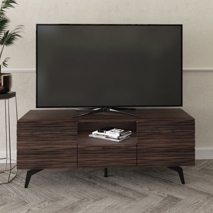 TV Stand - Cruceru TV Unit with 2 Door and Single Drawer Dark Walnut