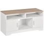 TV Stand for TVs up to 42 Inches with Cabinets, Shelves and Wide Tabletop for Living Room, Bedroom, Dining Room, White and Wood Color