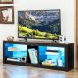 TV Stand - TV Stand with LED Light for TVs up to 65 Inch with Adjustable Tempered Glass Shelves-Rustic Brown