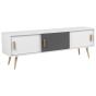 The sleek and elegant sideboard is not only a wonderful accent piece to your living room, but also a highly functional utility piece. Constructed from engineered wood with a matte finish for a most sophisticated look. Deep and spacious shelves provide room for various home accessories and are also suitable for RTV devices. Sliding doors open and close the shelves effortlessly without standing out. The sideboard is a truly versatile piece, which due to a minimalistic design, highlighted by the solid wood legs, fits with any of your contemporary decorated interiors. Details: Color: White, Light Wood, Grey. Main material: MDF. Additional material: Beechwood. Weight: 33 Assembly: Full Assembly Required Wood type: Fagus Sylvatica Wood Origin: China