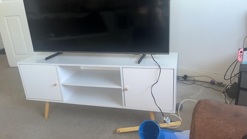 - Minimalist Style: The ideal TV table serves its purpose and looks good at the same time. This TV unit achieves both and even pairs well with other furniture styles. Wondering how many inches of TV it can hold? Up to 55 inches