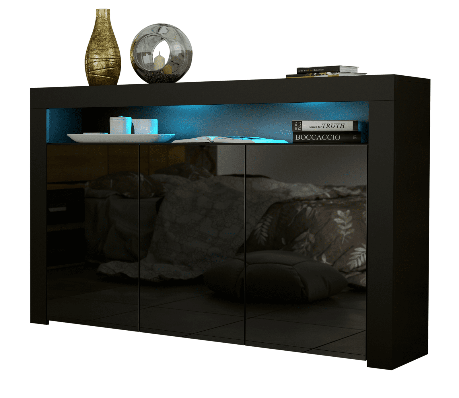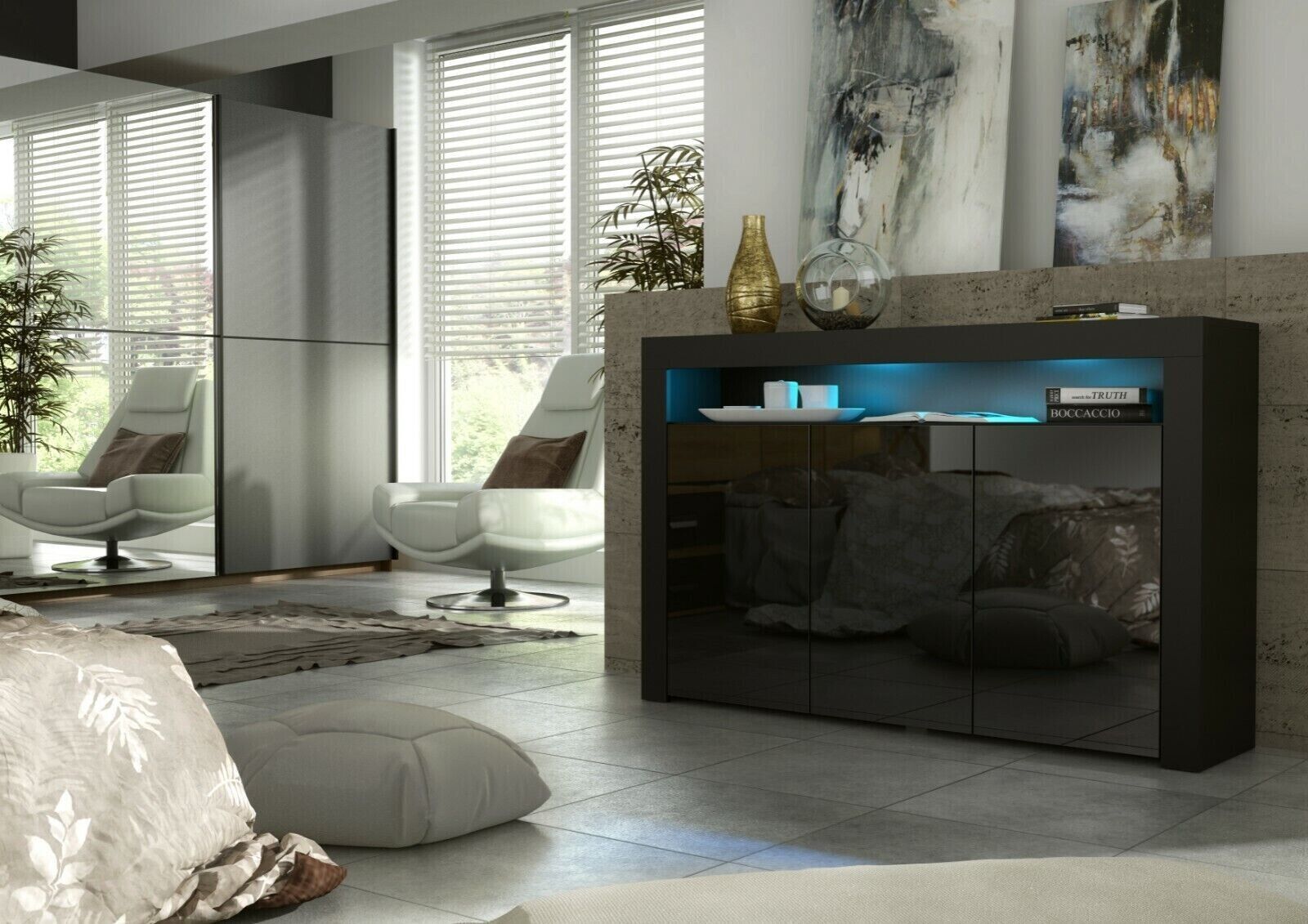 TV Unit Sideboard Cabinet with 3 Doors Storage and Free LED Lighting 155cm - Black