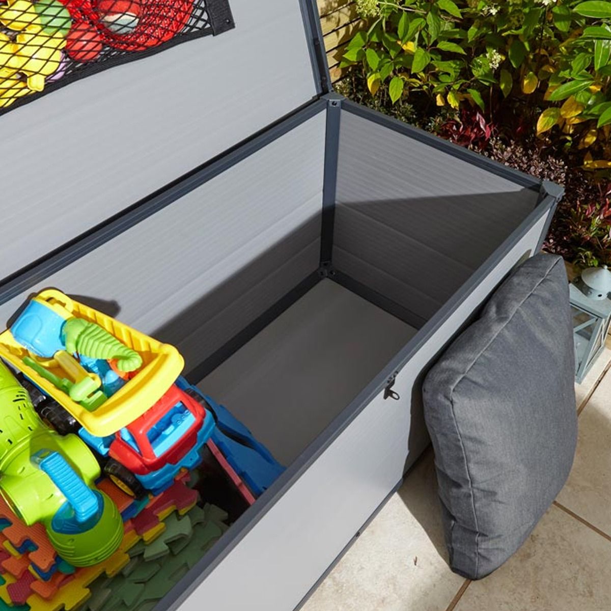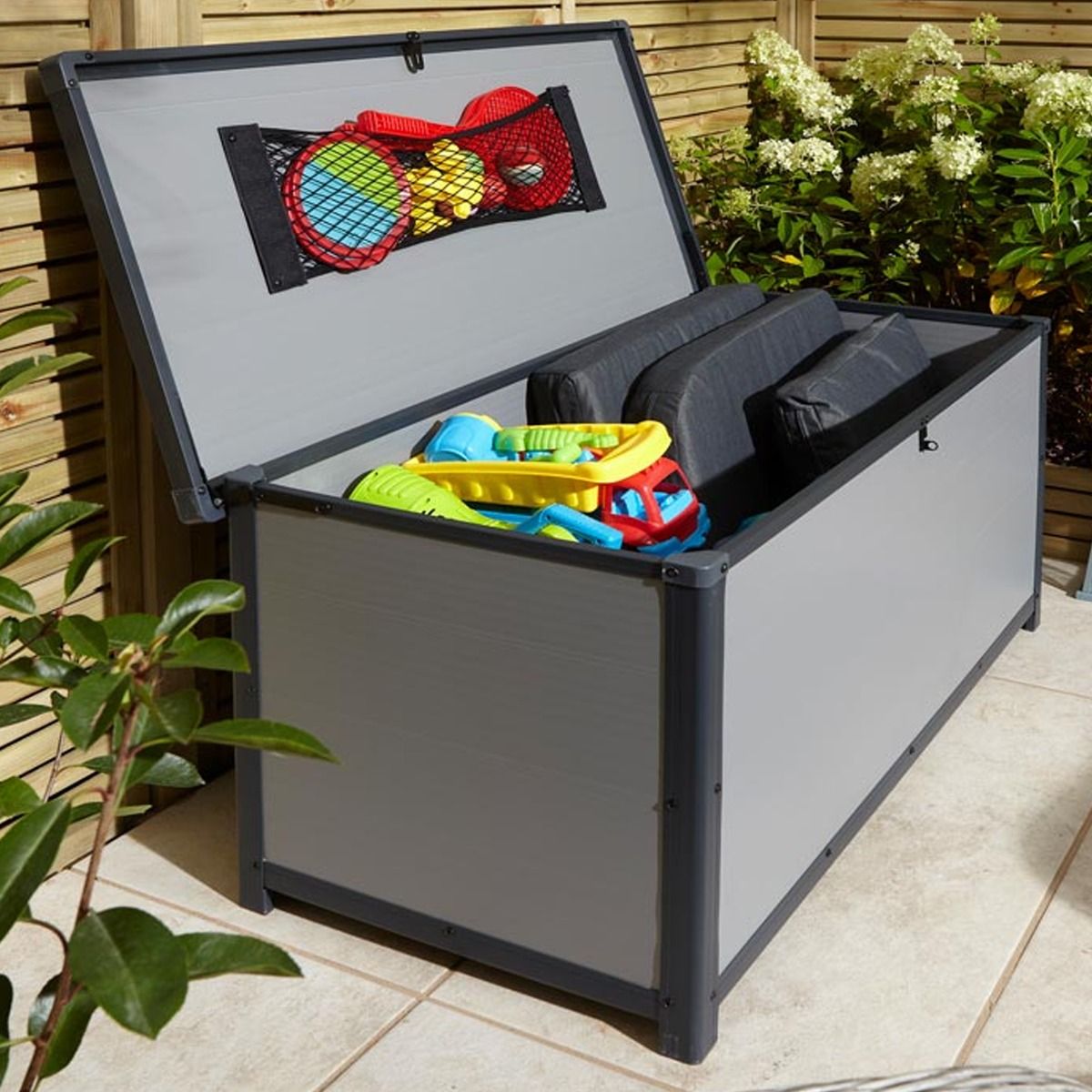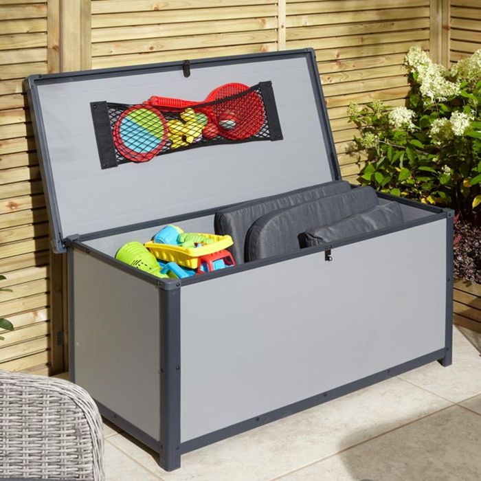 Tyrrell Apex Plastic 4x2 Garden Storage Box with Lift up Lid - Light Grey