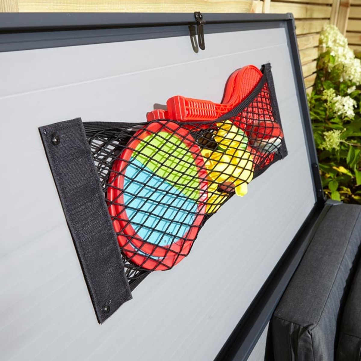 The Tyrrell Apex Plastic 4x2 Garden Storage Box is a practical and stylish solution for your outdoor storage needs. Available in Light Grey and Dark Grey, this storage box features a convenient lift-up lid for easy access. Designed with net storage for small items, it helps keep your belongings organized. The box is lockable for added security, requiring your own padlock.