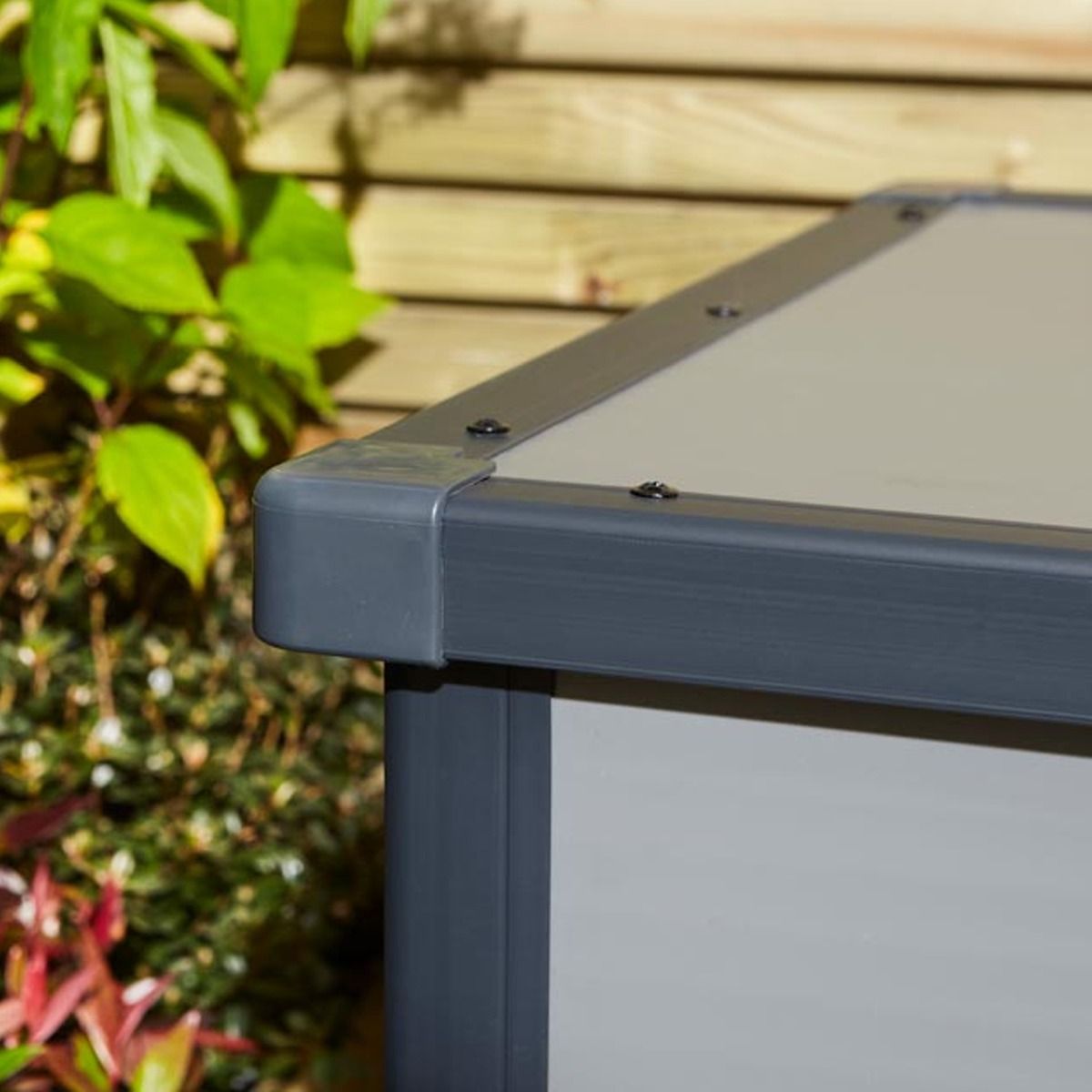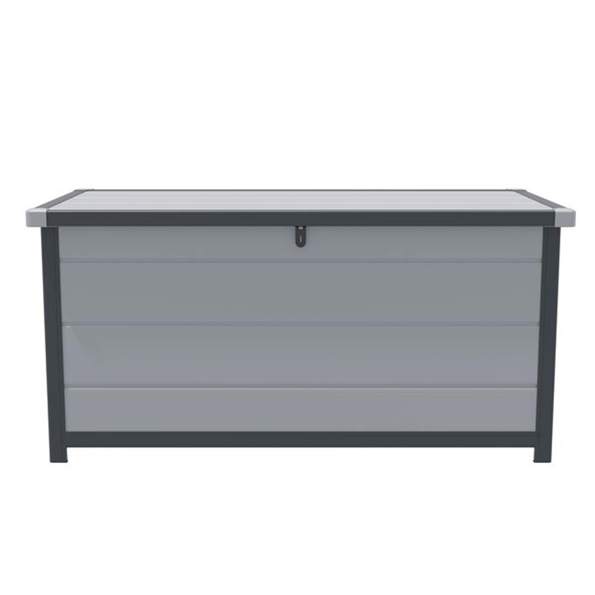 Constructed from UV-protected Polypropylene, this storage box is durable and weather-resistant. The frame consists of 1.5mm thick plastic columns and 12mm twin-wall fluted panels, ensuring strength and low maintenance. With an approximate capacity of 342 litres, the Tyrrell Apex Plastic Garden Storage Box combines functionality with sleek design, featuring a dark grey body with light grey trim.