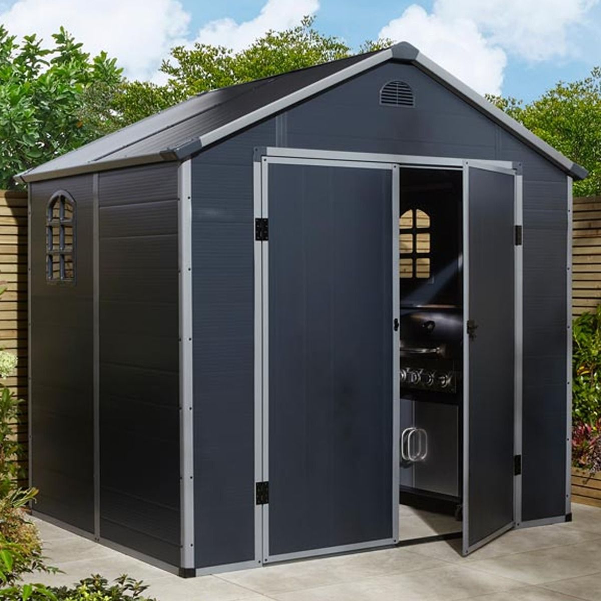 Tyrrell Apex Plastic 8x6 Garden Double Door Shed with Lockable Door and Side Window - Dark Grey
