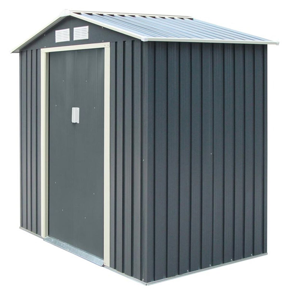 Tyson Double Sliding Door 6x4 Metal Apex Shed - Dark Grey