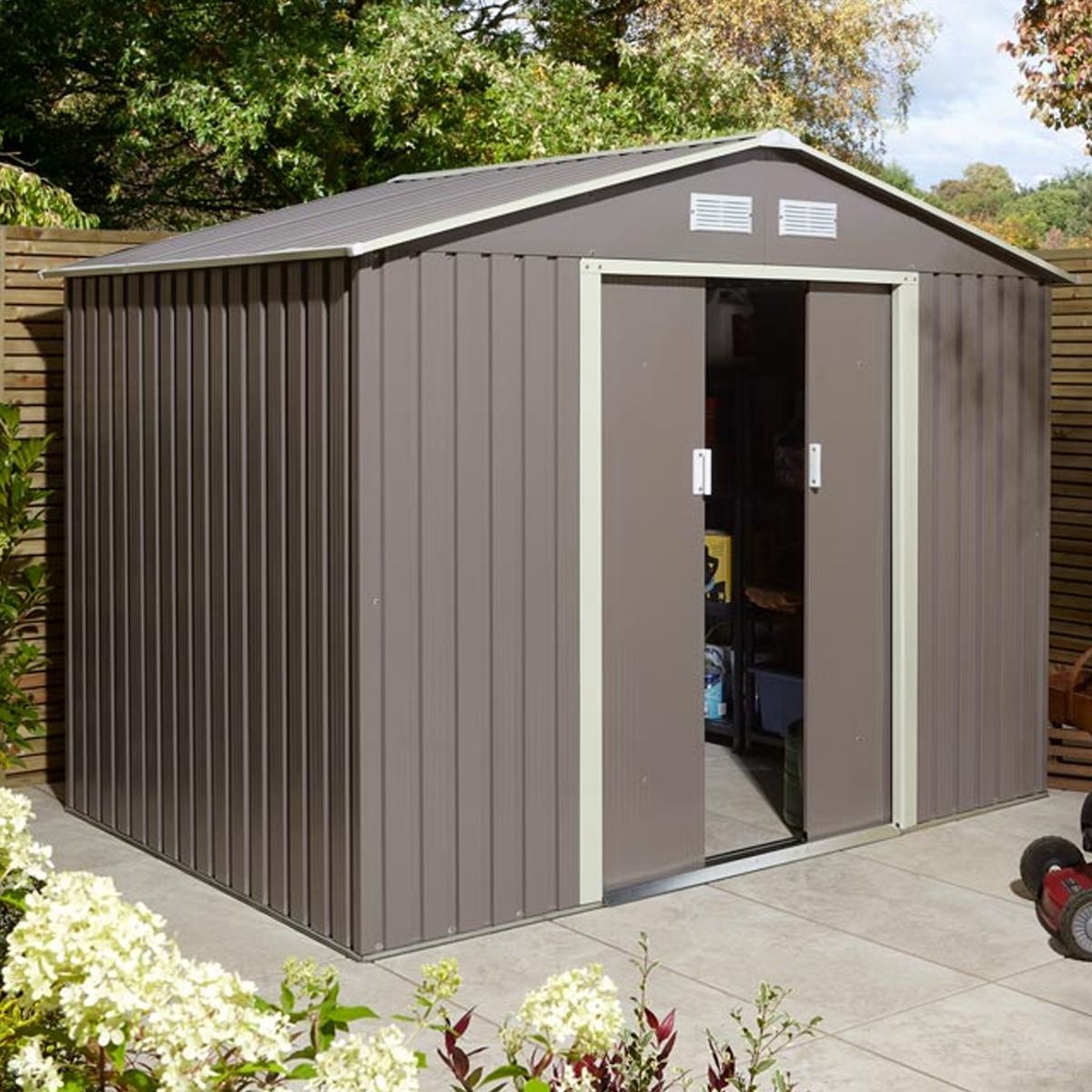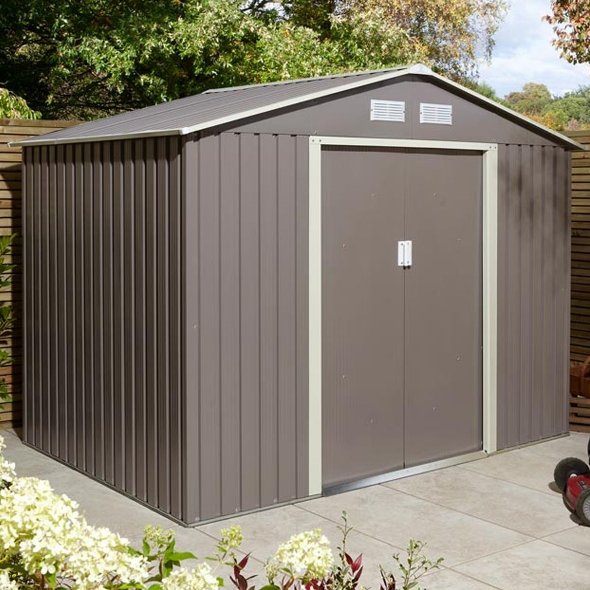 Tyson Double Sliding Door 8x6 Metal Pent Style Roof Shed - Light Grey