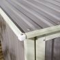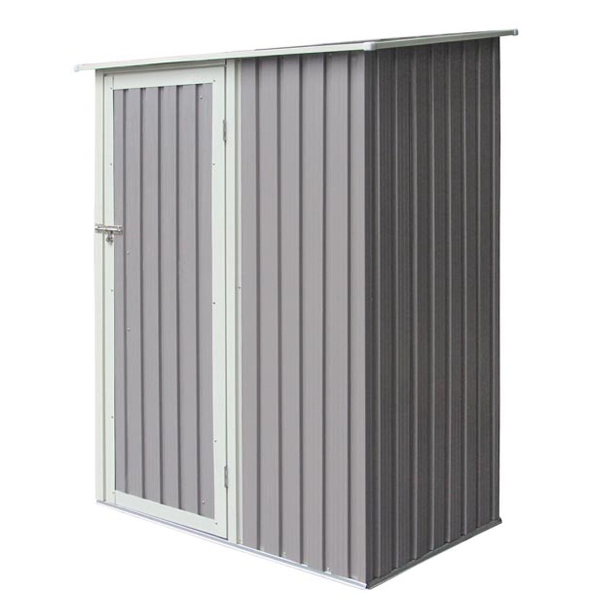 Introducing the 5×3 Tyson Metal Apex Shed, a robust and stylish storage solution designed for durability and ease of use. Featuring a pent style roof and a single lockable door (padlock not supplied), this shed offers secure storage for your belongings. Constructed from electro-galvanized and painted steel with a 0.25mm thickness, it is both fire and rot resistant, ensuring long-lasting protection. The shed is painted in dark grey with off-white trim, providing a modern aesthetic that complements any outdoor space.