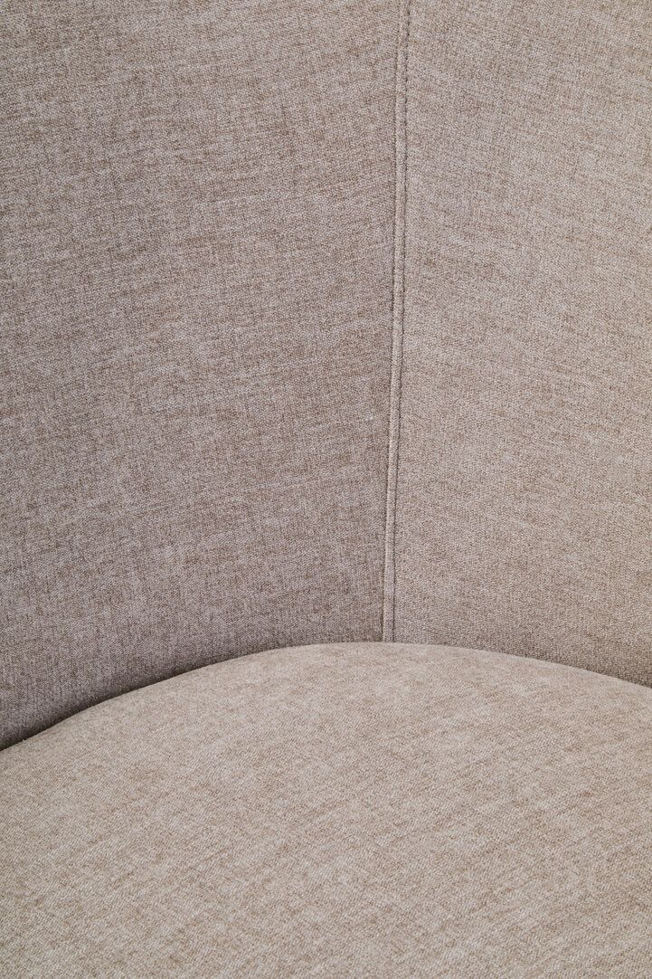 The ULVANE chair boasts a curved form and taupe chenille upholstery, offering comfortable seating and a chic statement piece for modern homes.