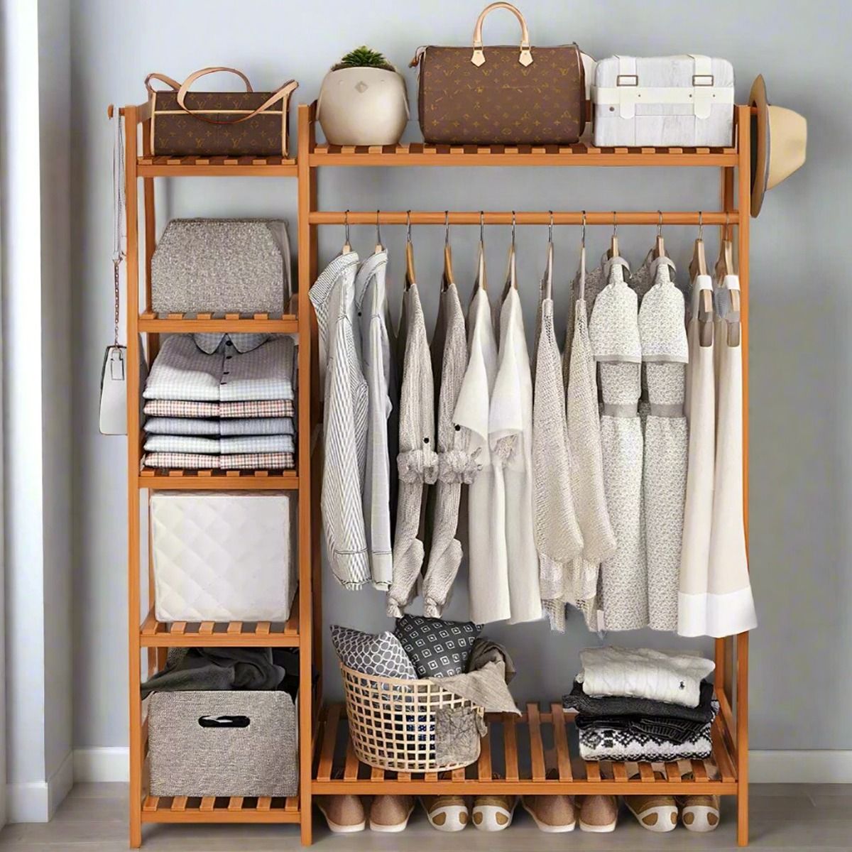 ULVERIS Clothes Rail Heavy Duty Wooden Garment Rack - Natural