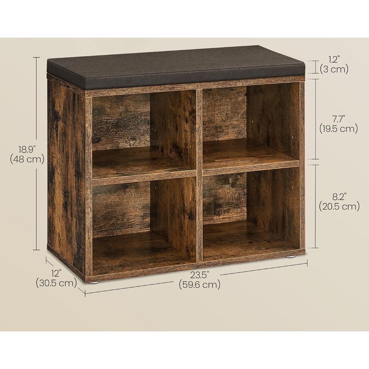 ULVERIS Shoe Storage Bench with Adjustable Shelves and Cushion Seat - Rustic Brown
