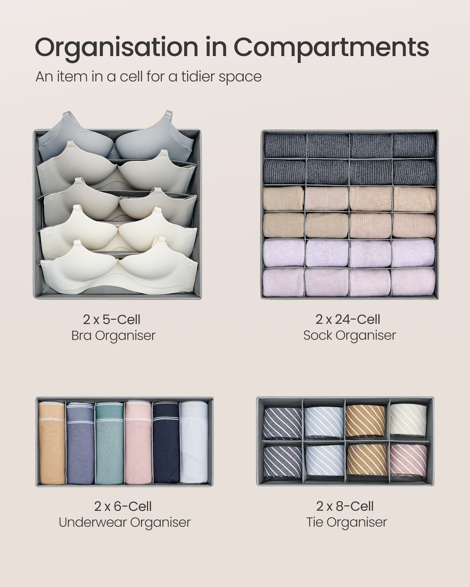 Underwear Organizer - VELON Foldable Drawer Dividers Organizer - Dove Grey