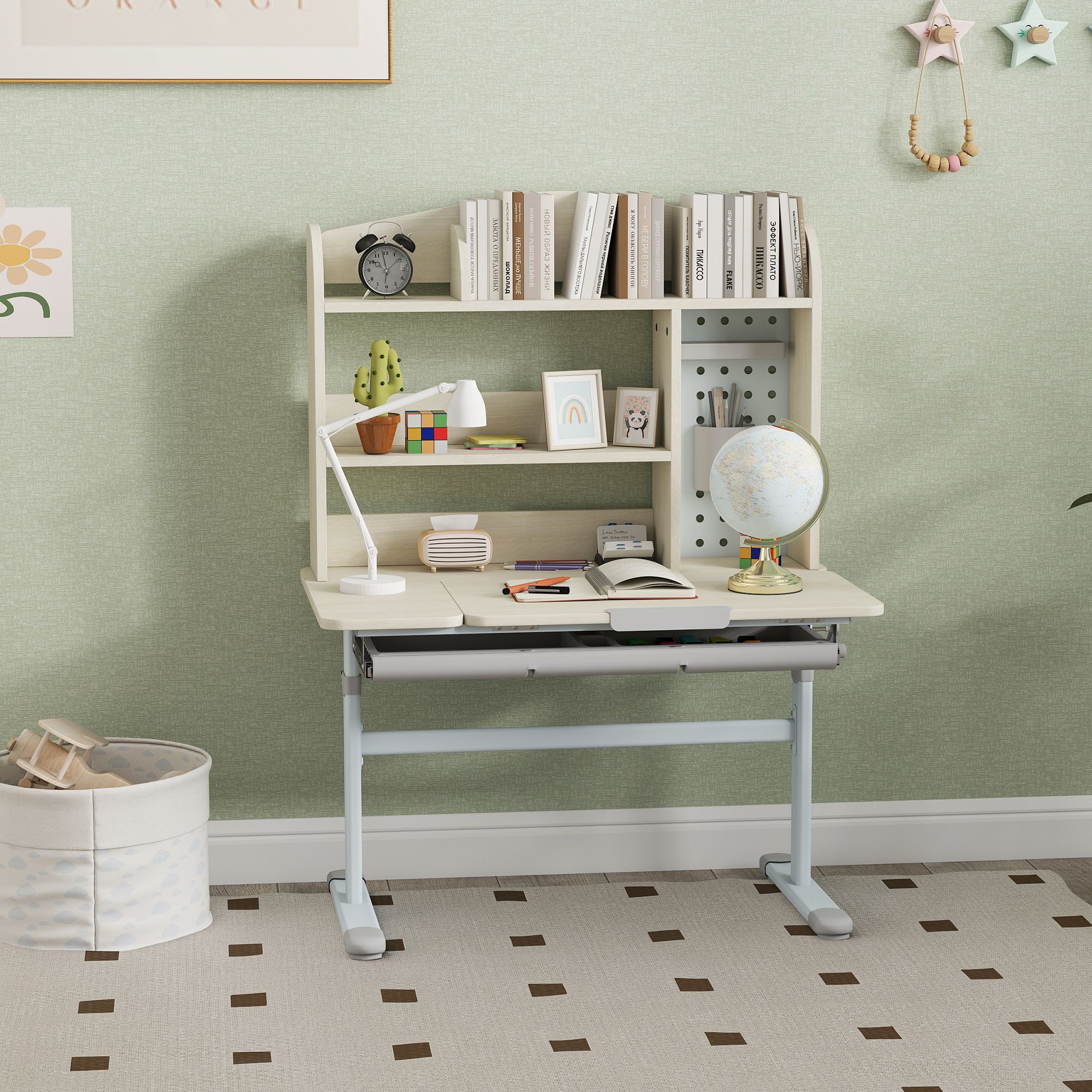 Height Adjustable Kids Desk with Tilt Top and Storage - Natural