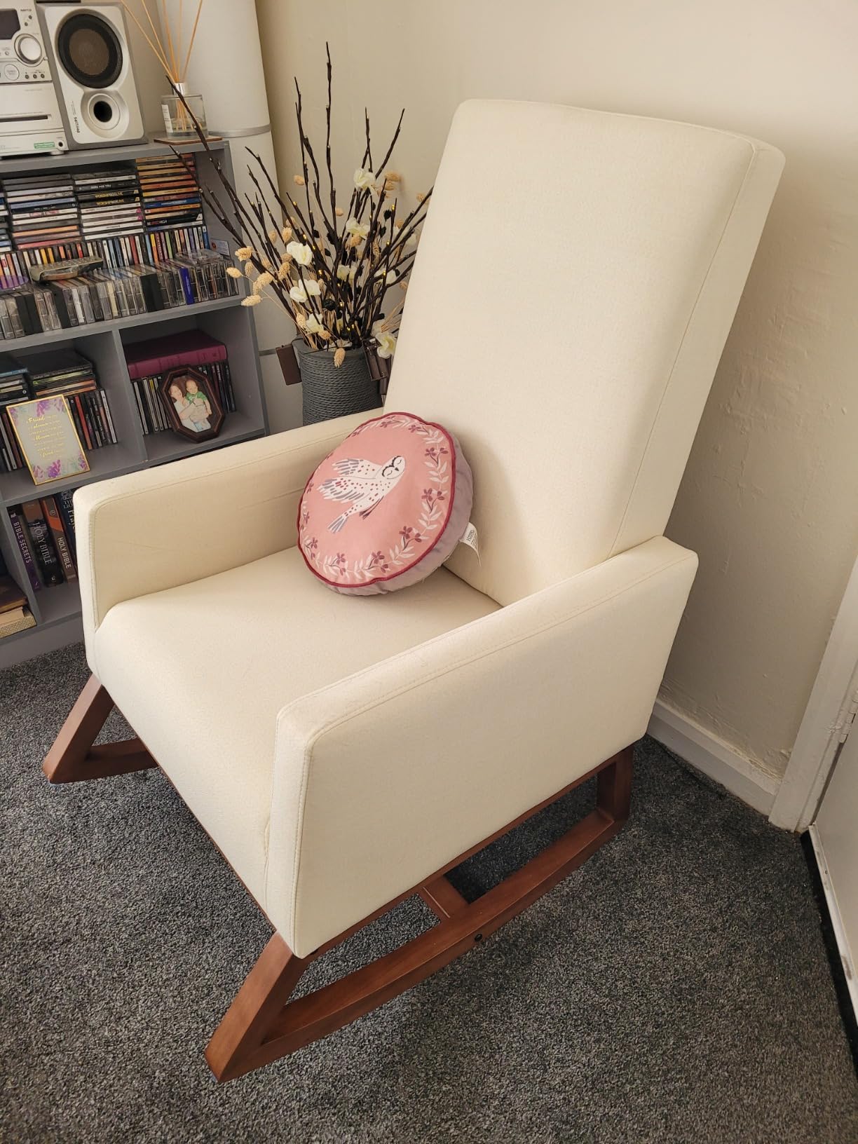 Upholstered Fabric Armchair with Rubber Wood Base-Beige