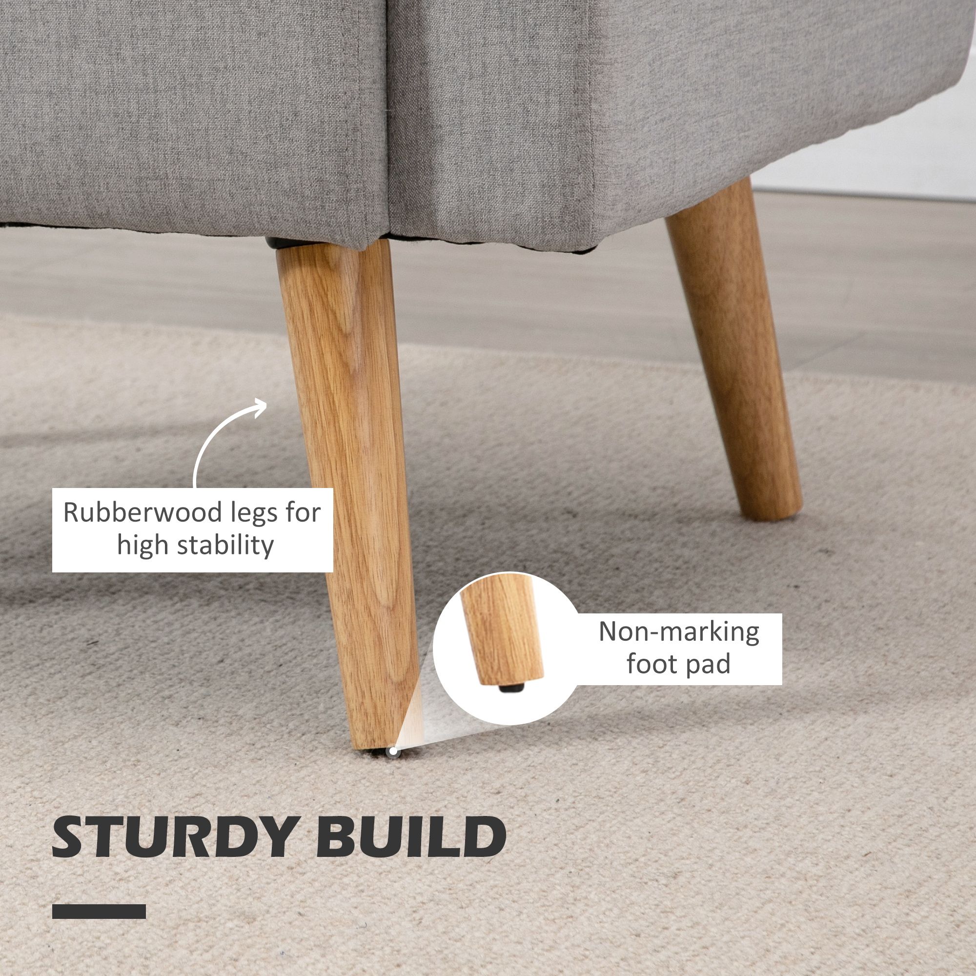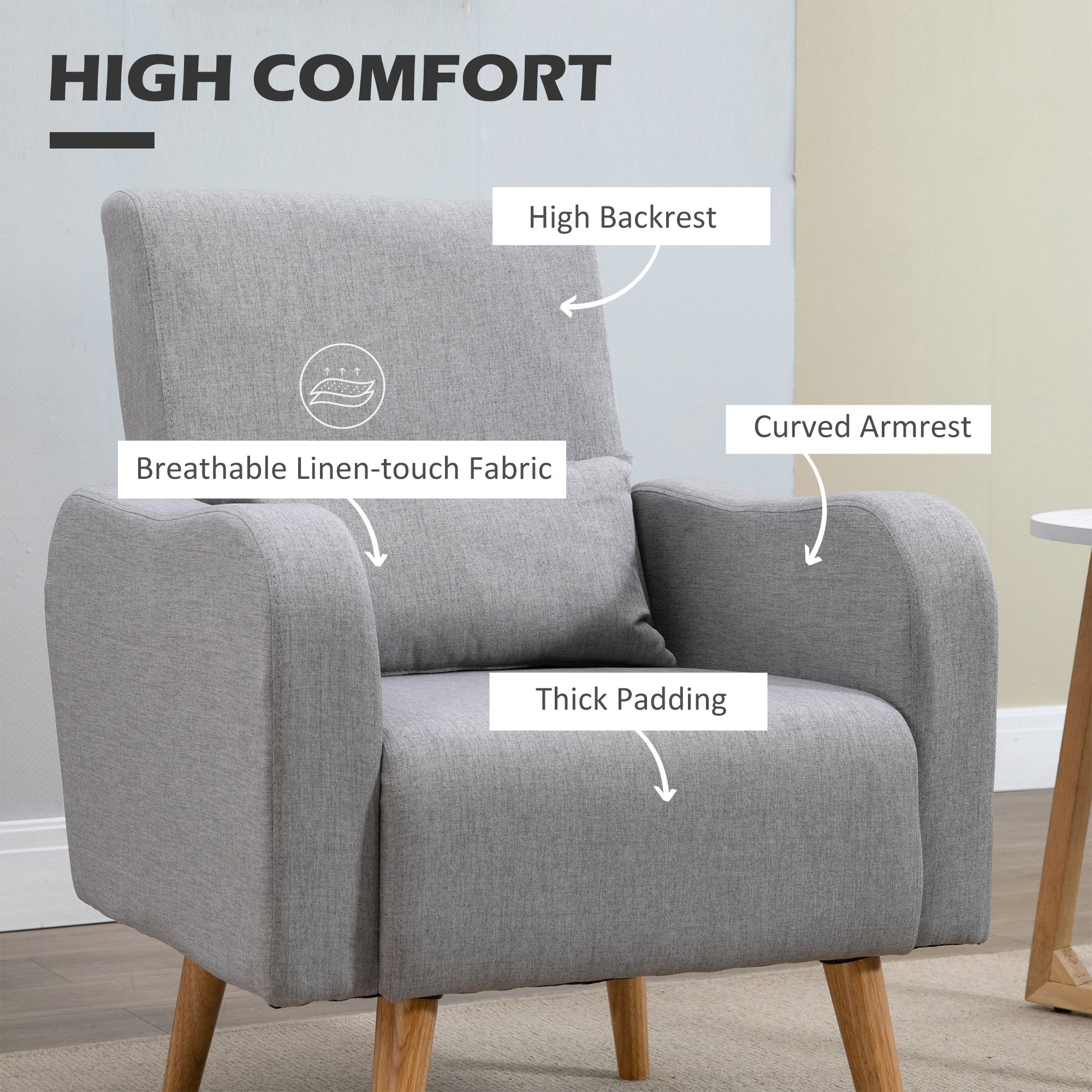 Upholstered Linen-Touch Arm Club Chair with Wooden Frame - Grey