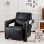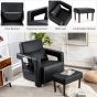 Upholstered Padded Accent Chair with Footstool and Lumbar Pillow-Black