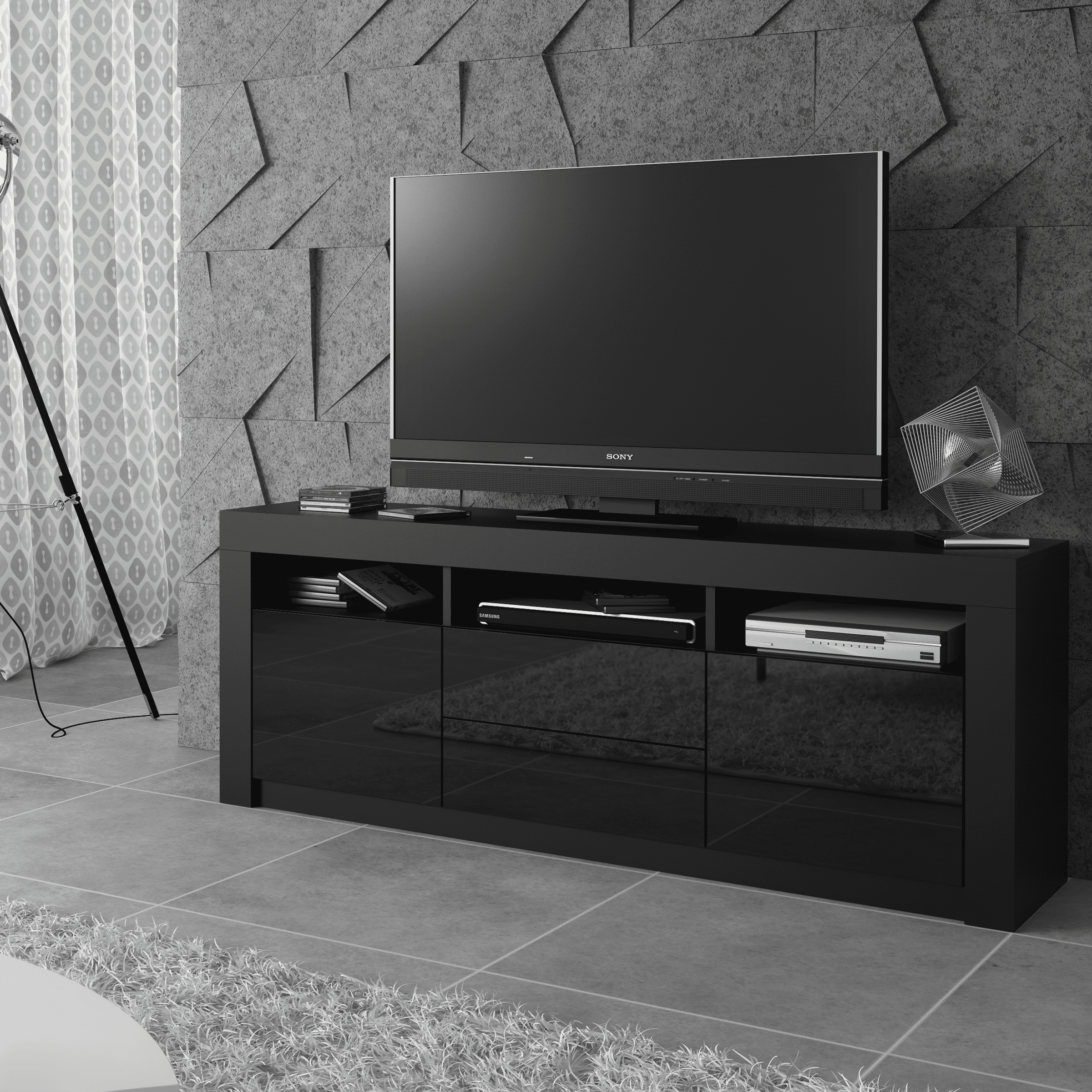 URFI Modern TV Unit Matt Body with High Gloss Fronts 160cm - Black