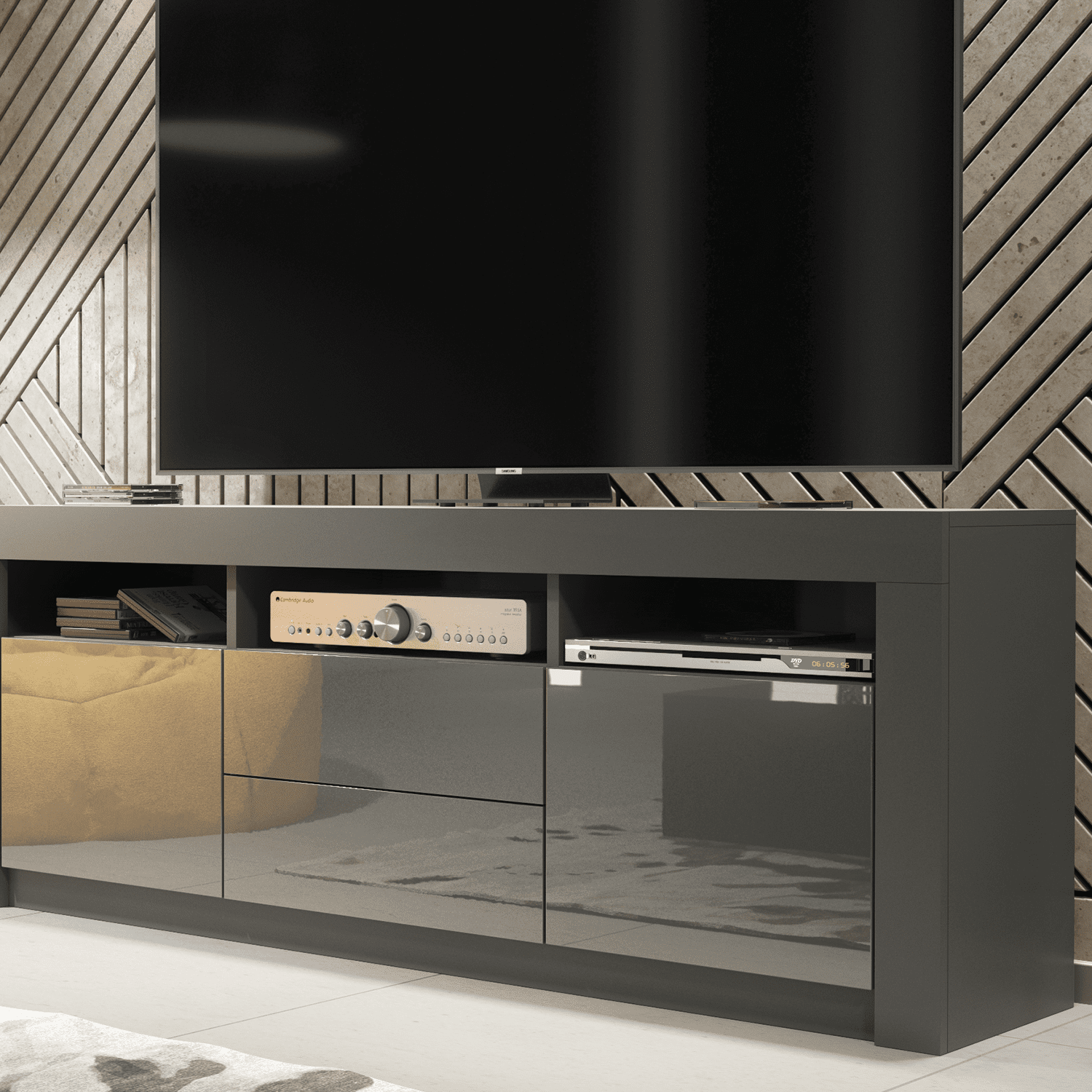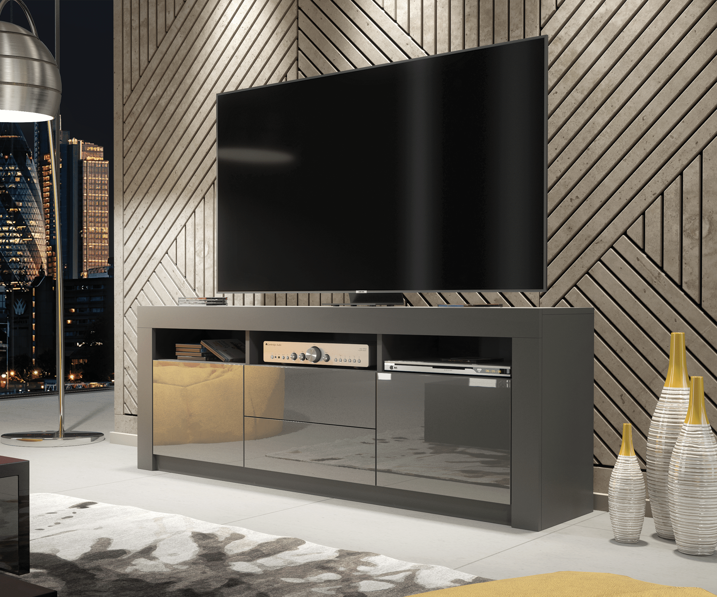 URFI Modern TV Unit Matt Body with High Gloss Fronts 160cm - Grey