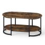 URMYOR Marble Coffee Table with Open Storage Shelf-Rustic Brown
