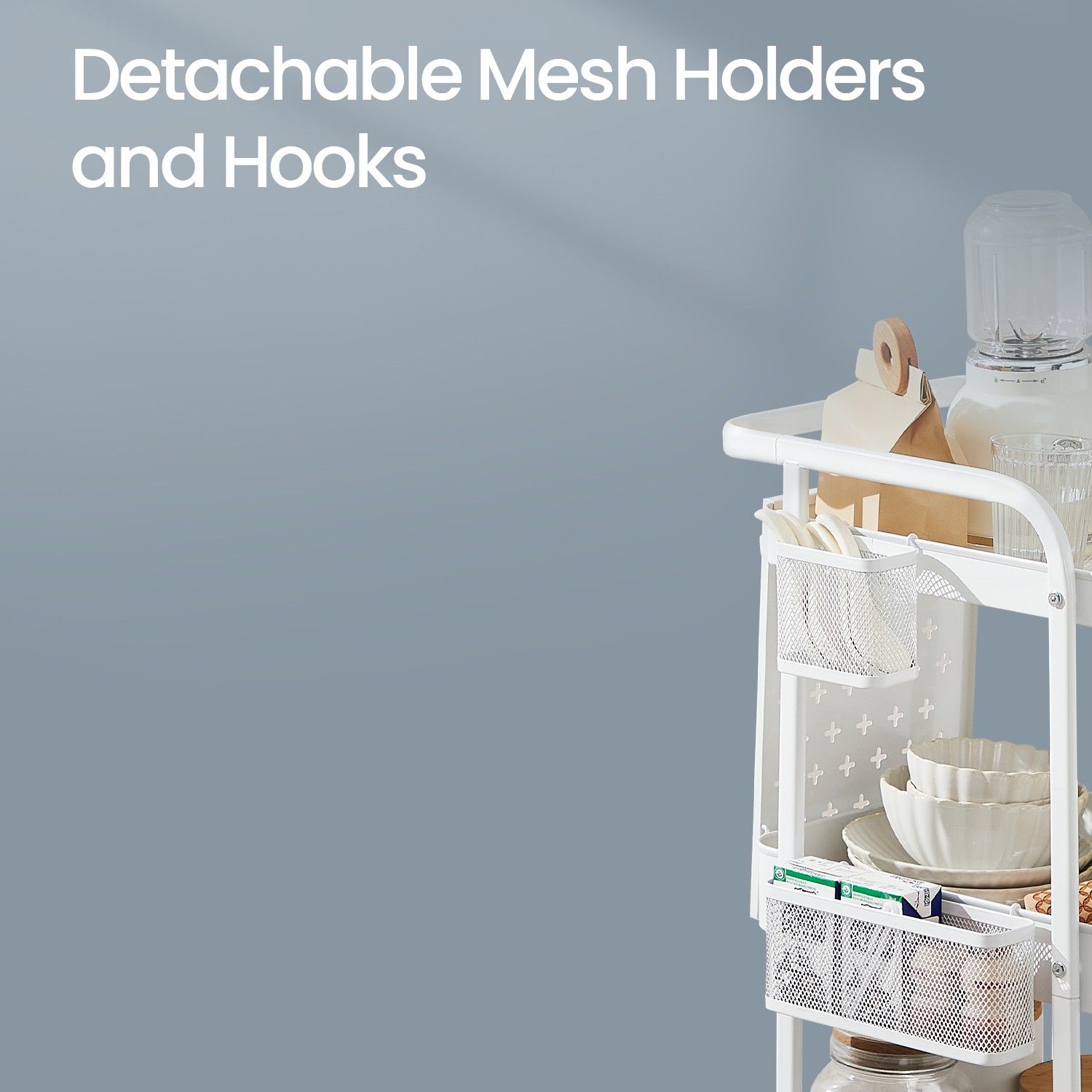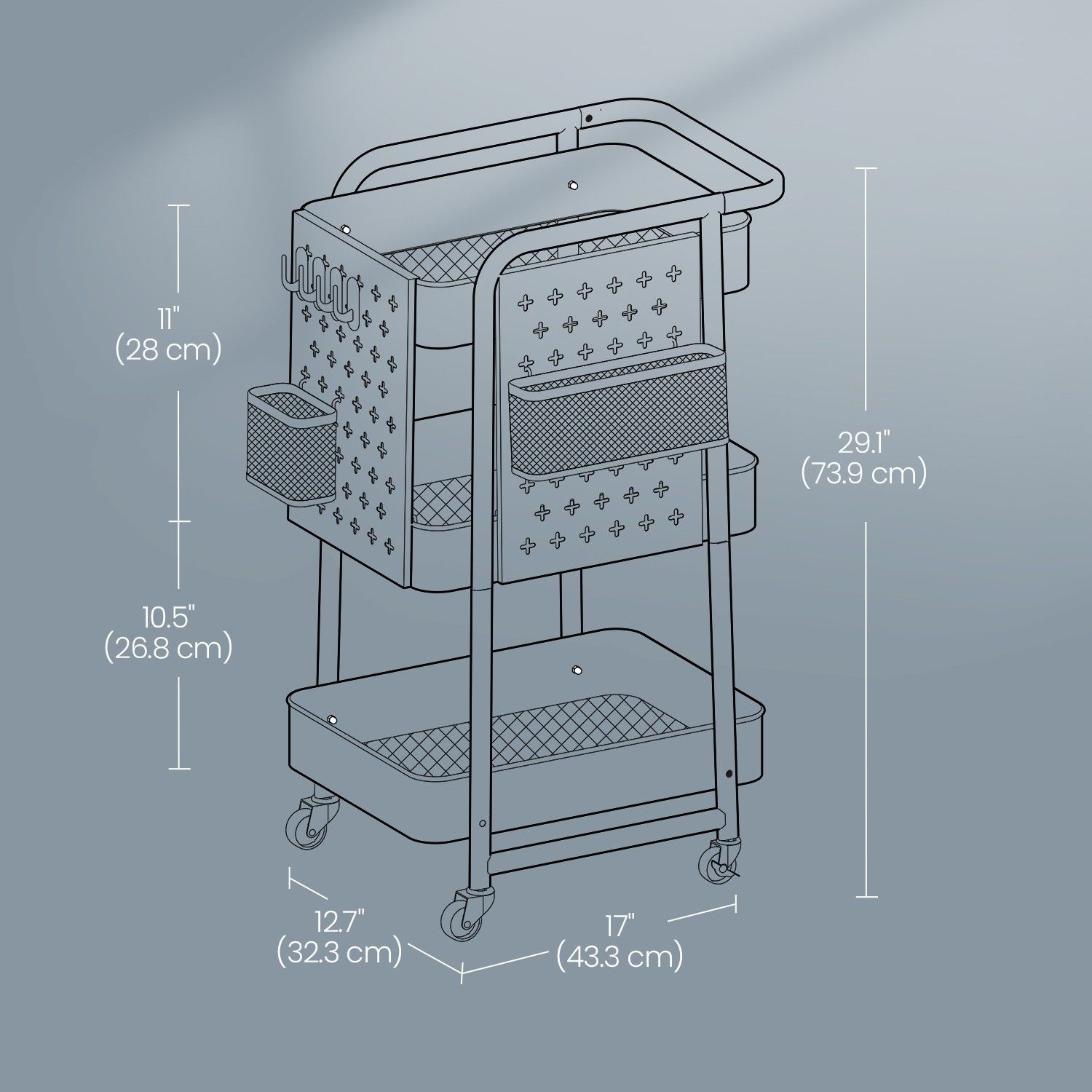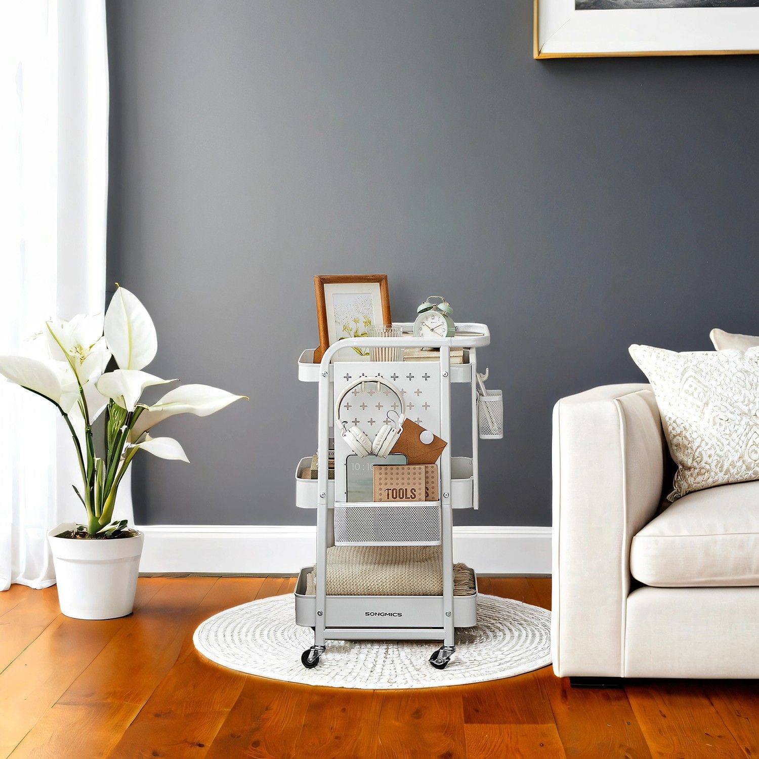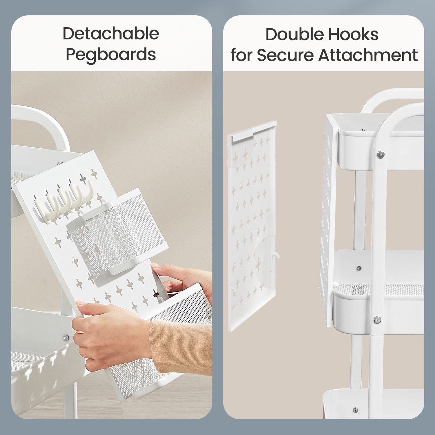 Utility Cart - VERRA 3 Tier Rolling Storage Cart with 2 Removable Pegboard - White