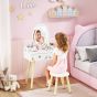 VALTHORNYX Kids Dressing Table and Chair Set with 3 Colour LED Lights Mirror, Drawer and Storage Boxes for 3+ Years - White