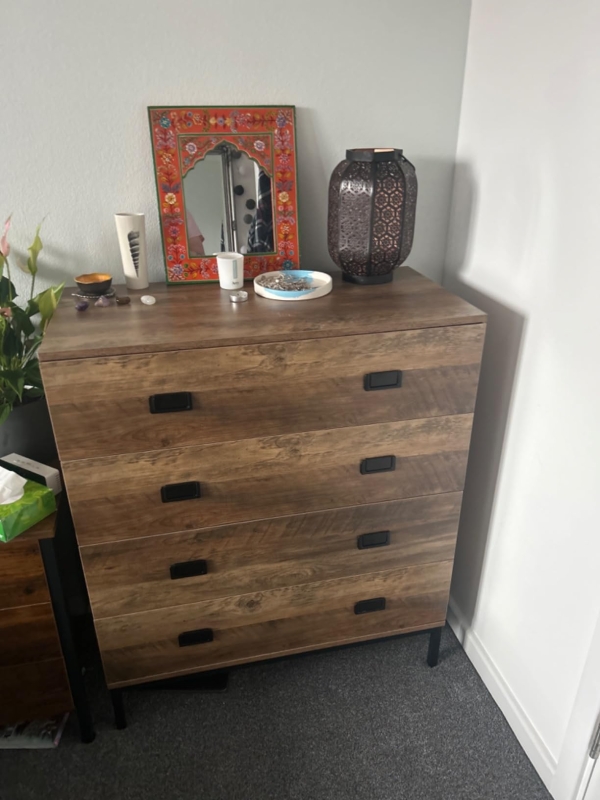 VANCOUVER Oak Finish Chest of Drawers - Medium-sized, 4 Drawers