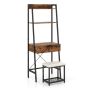 Vanity Table Set with Flip Top Mirror and Cushioned Stool-Black
