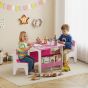 Kids Table and Chair Set with Bookshelves, 3 Pieces - Pink