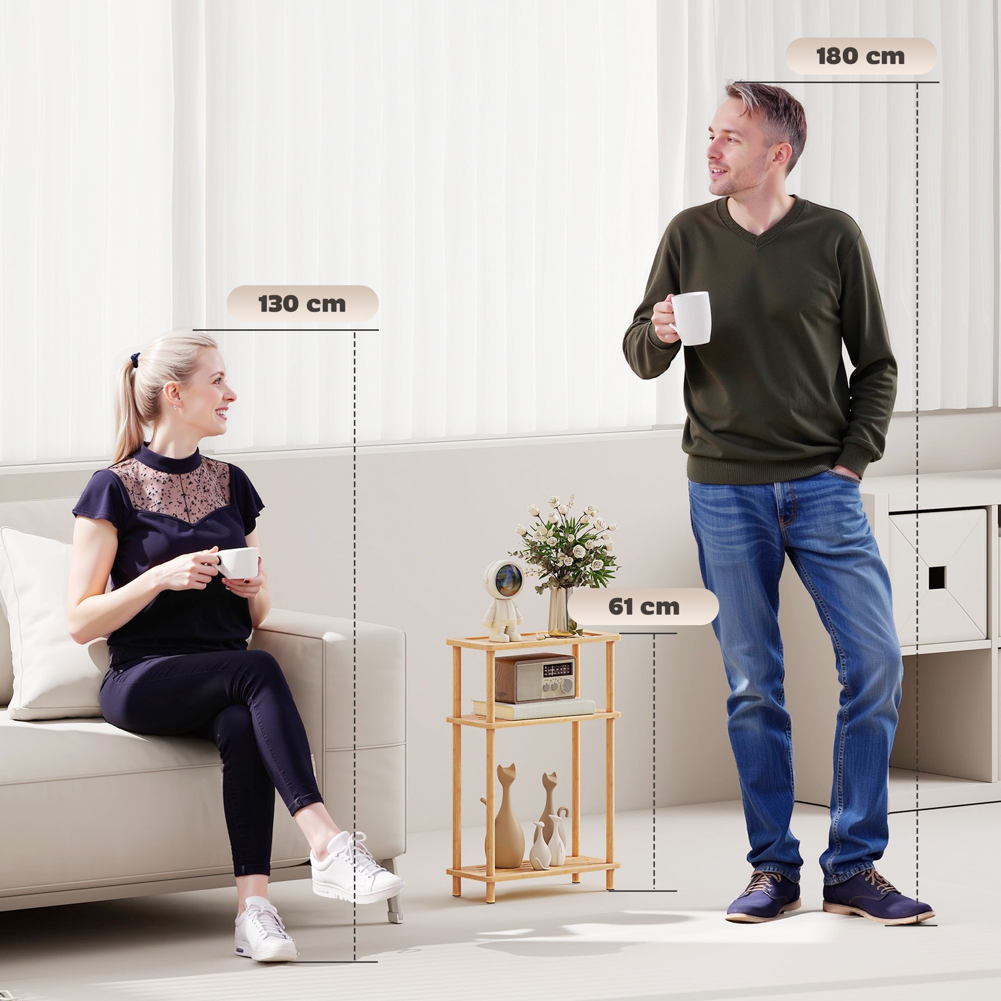VARNLEY Bamboo Side Table 3 Tier Slim End Table - Natural