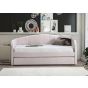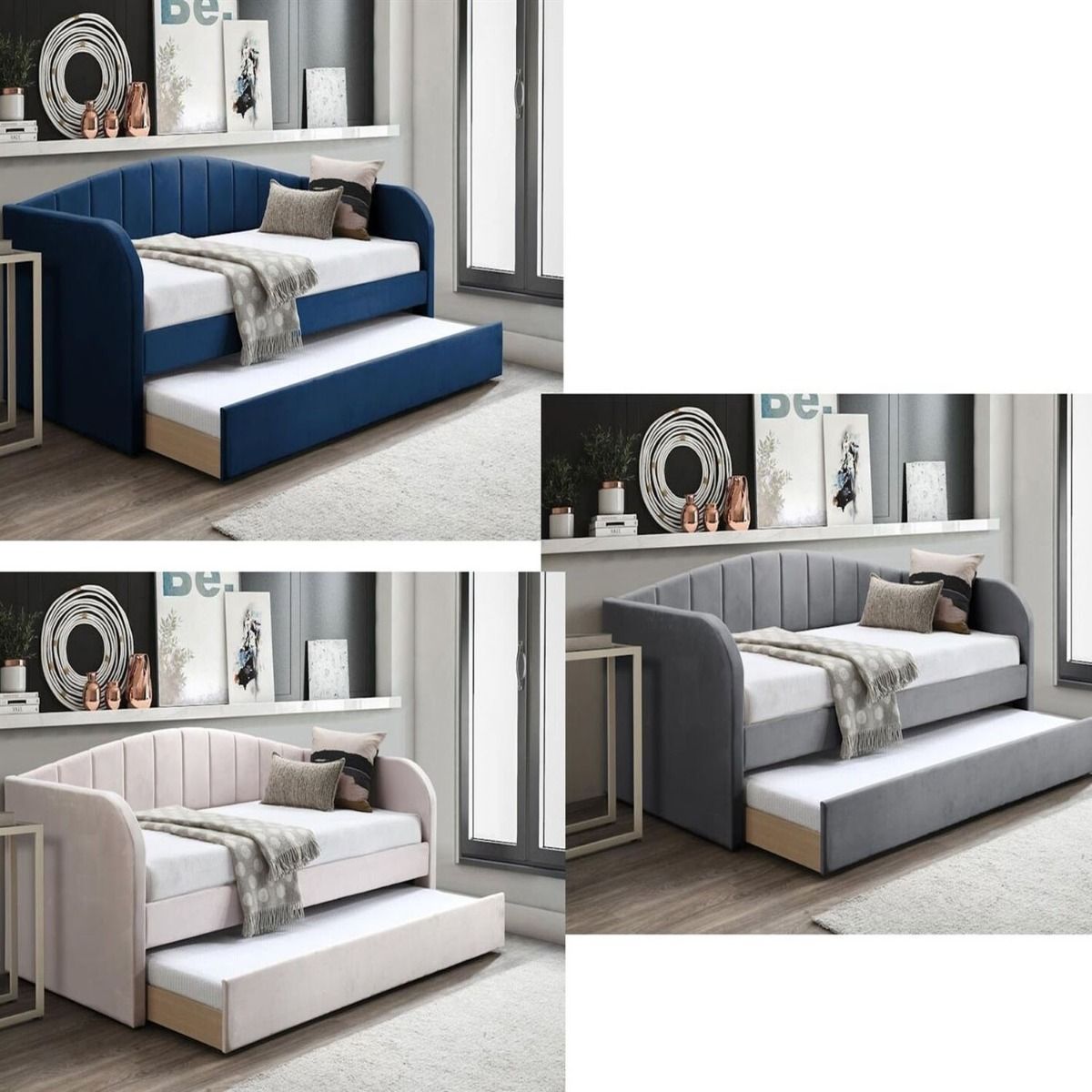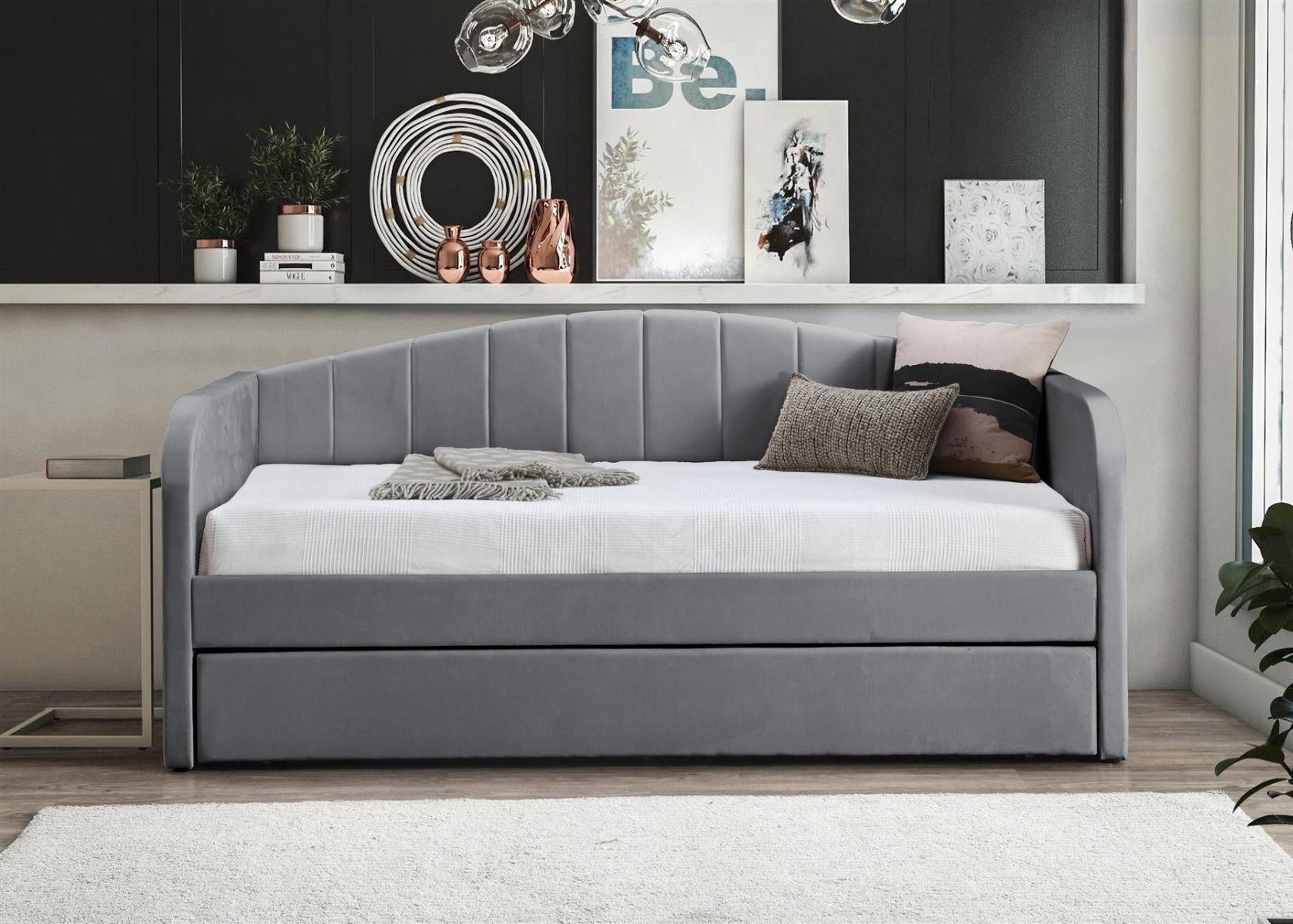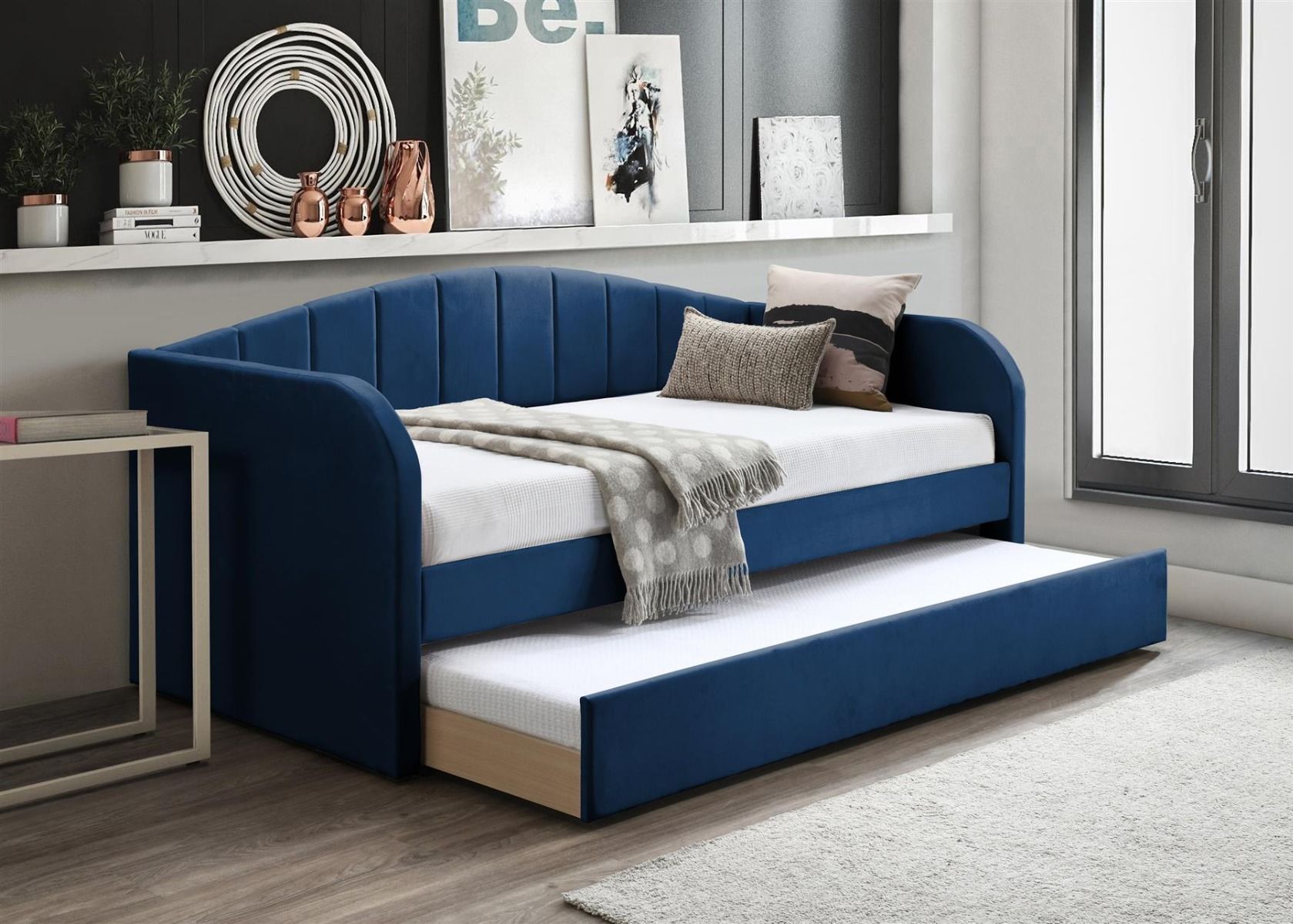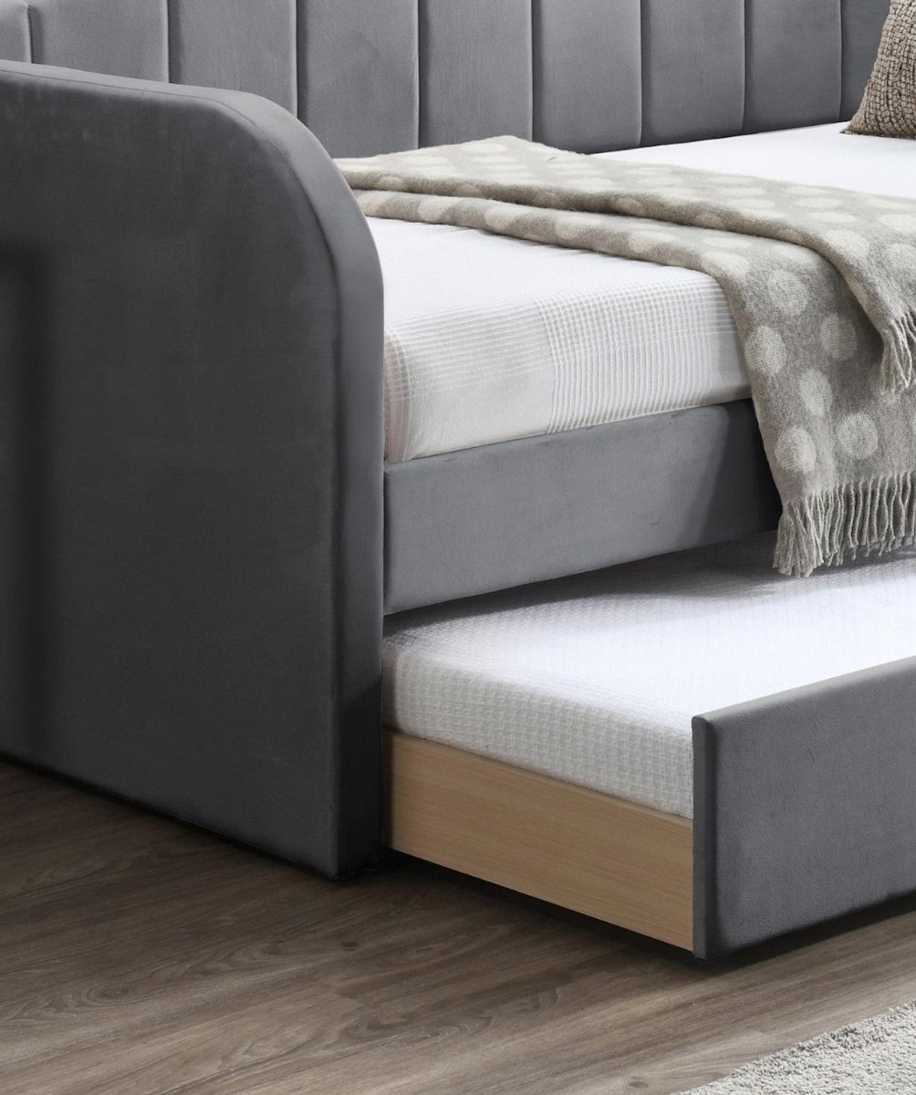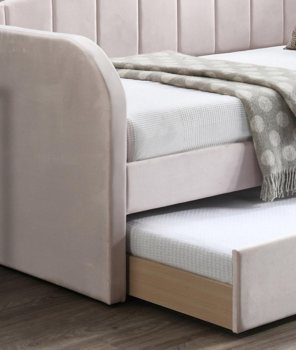 - Soft, velvet finish fabric bed frame with a rollout out bed frame underneath.