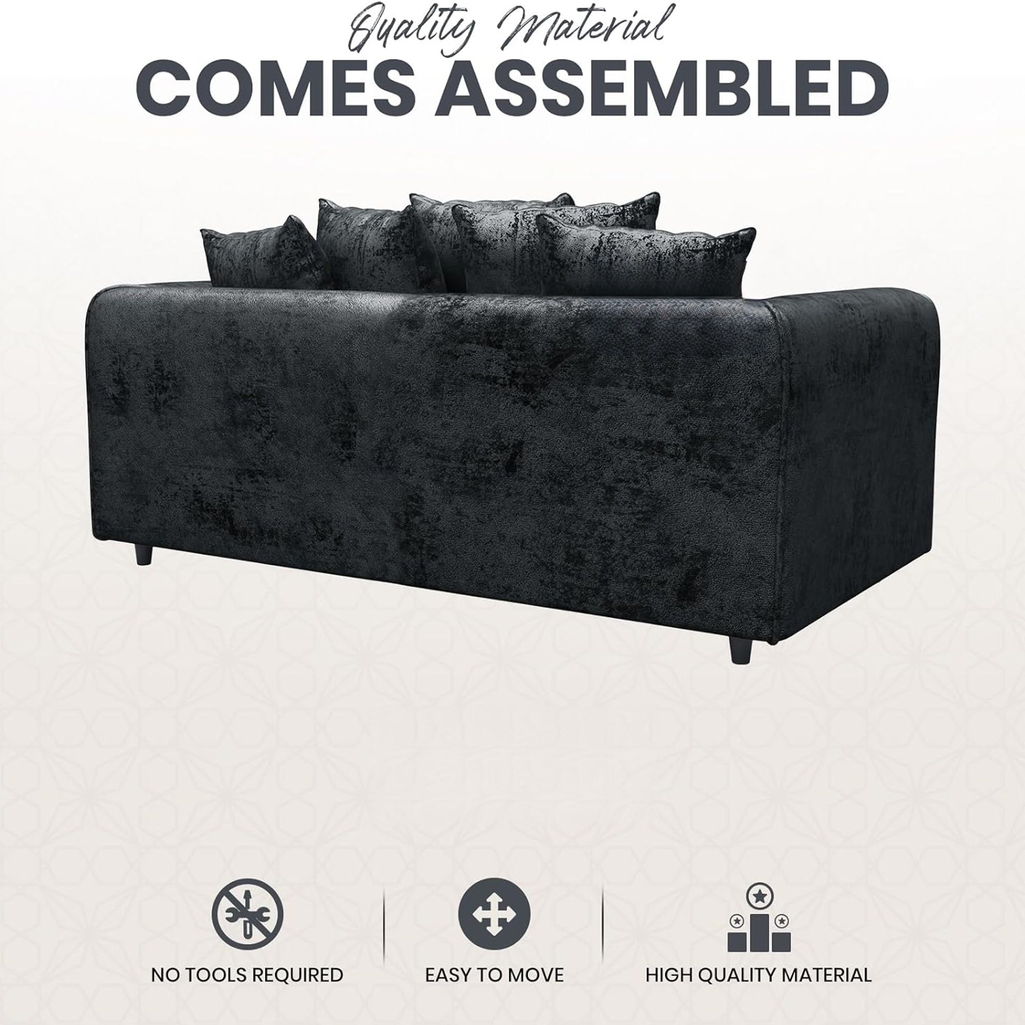 Its Scatterback cushions and gently angled arms provide cozy support for relaxing or entertaining. Sleek and stylish, this sofa perfectly blends modern design with practicality, making it ideal for living rooms or lounge areas. With its timeless design and sophisticated black finish, the VELOURA 3 Seater Sofa adds a touch of contemporary luxury to any home.