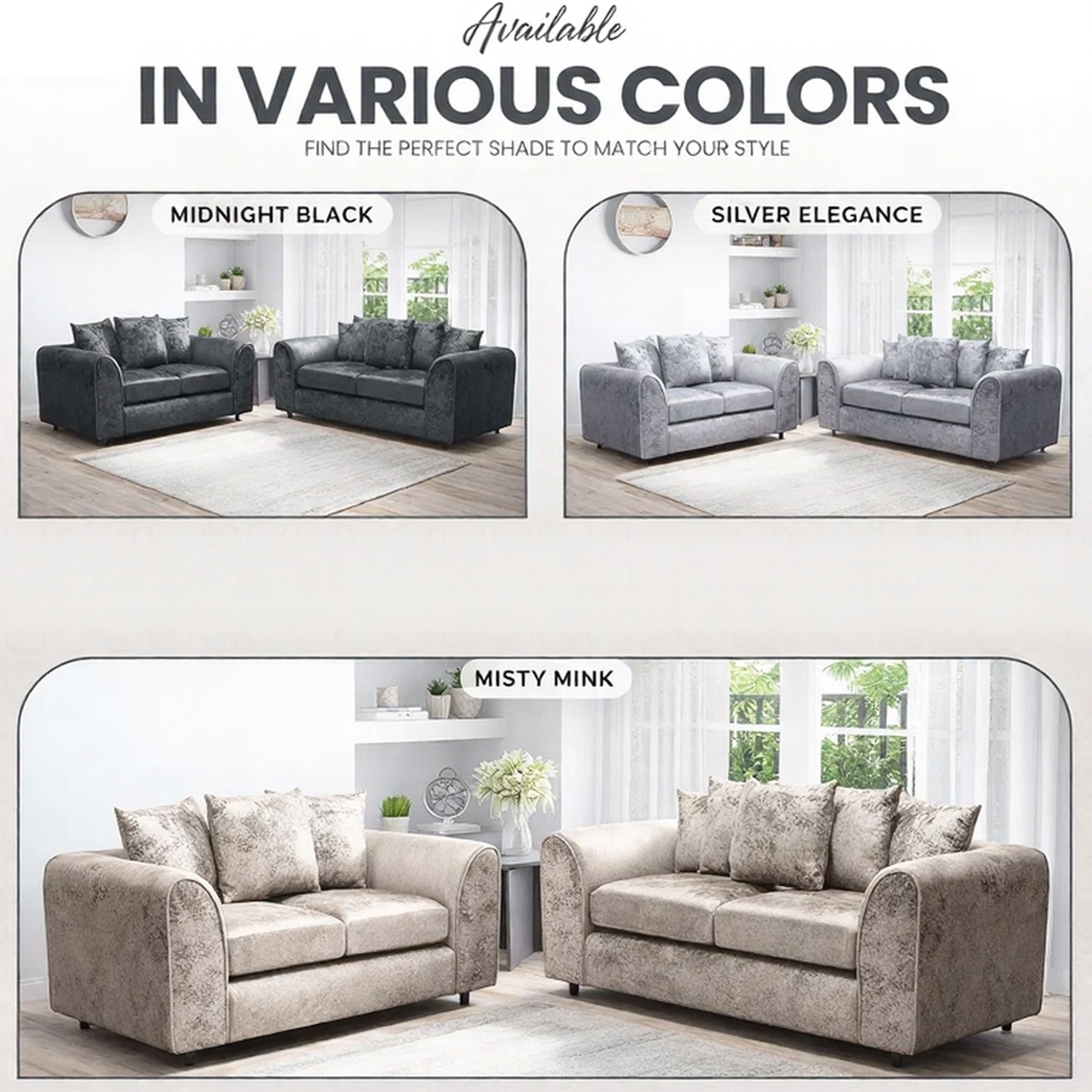 Upgrade your living room with the VELOURA 3 Seater and 2 Seater Sofa Set, designed to deliver both comfort and modern sophistication. Upholstered in soft crush velvet, these sofas provide a luxurious and inviting feel, while their sturdy wooden frames guarantee lasting durability