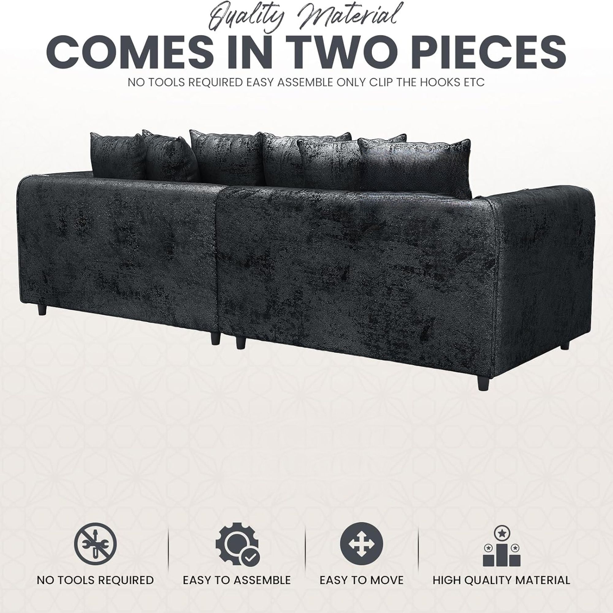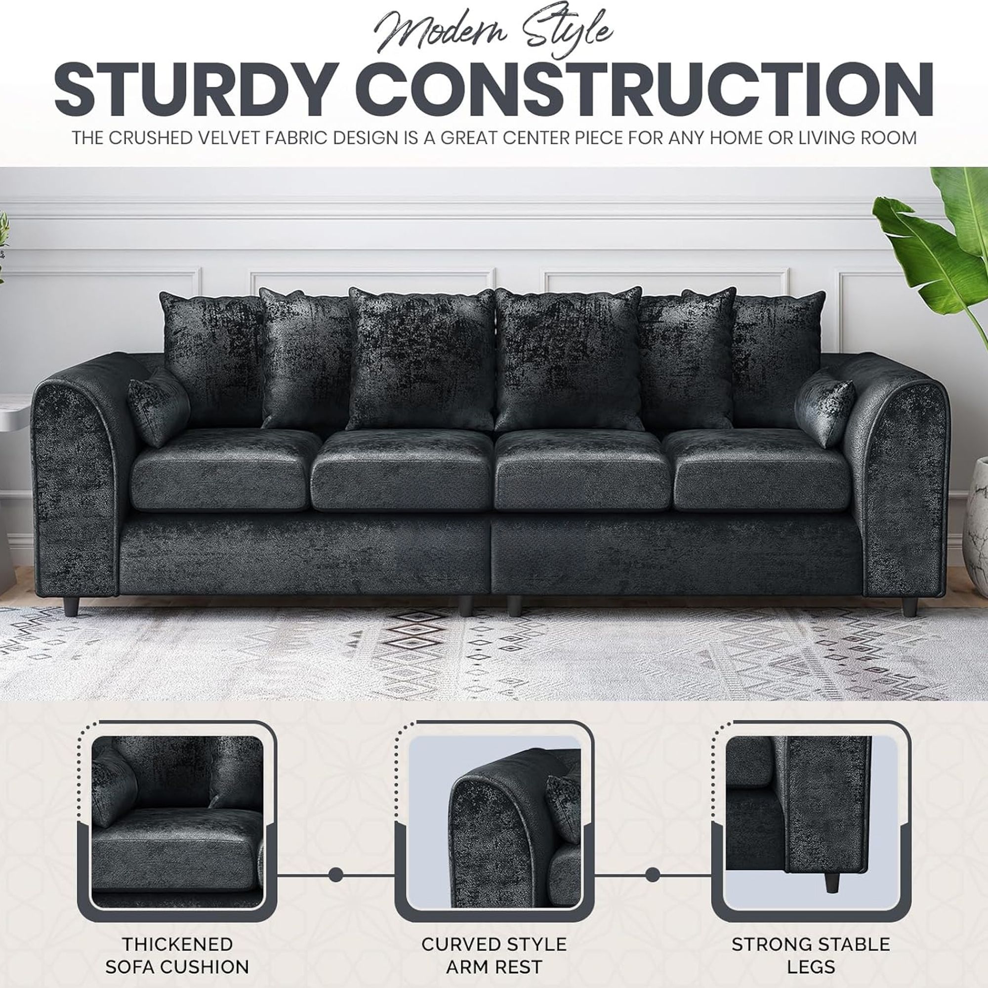 Enhance your living space with the VELOURA 4 Seater Sofa, where modern style meets ultimate comfort. Upholstered in crush velvet, it provides a soft, luxurious feel, while its sturdy wooden frame ensures lasting durability