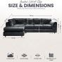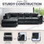 VELOURA Crush Velvet Large 5 Seater L Shaped Fullback Corner Sofa - Black, Left Hand Facing