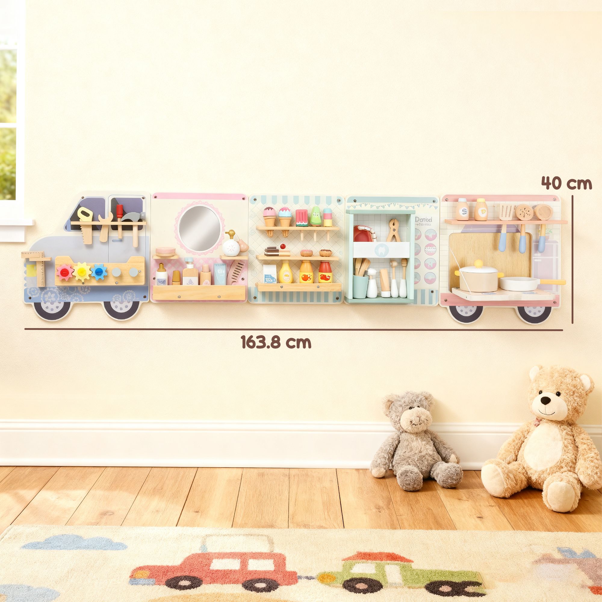 VELSCOTTOR Wooden Play Kitchen 5 in 1 Activity Wall Panels for Kids - Multicolour