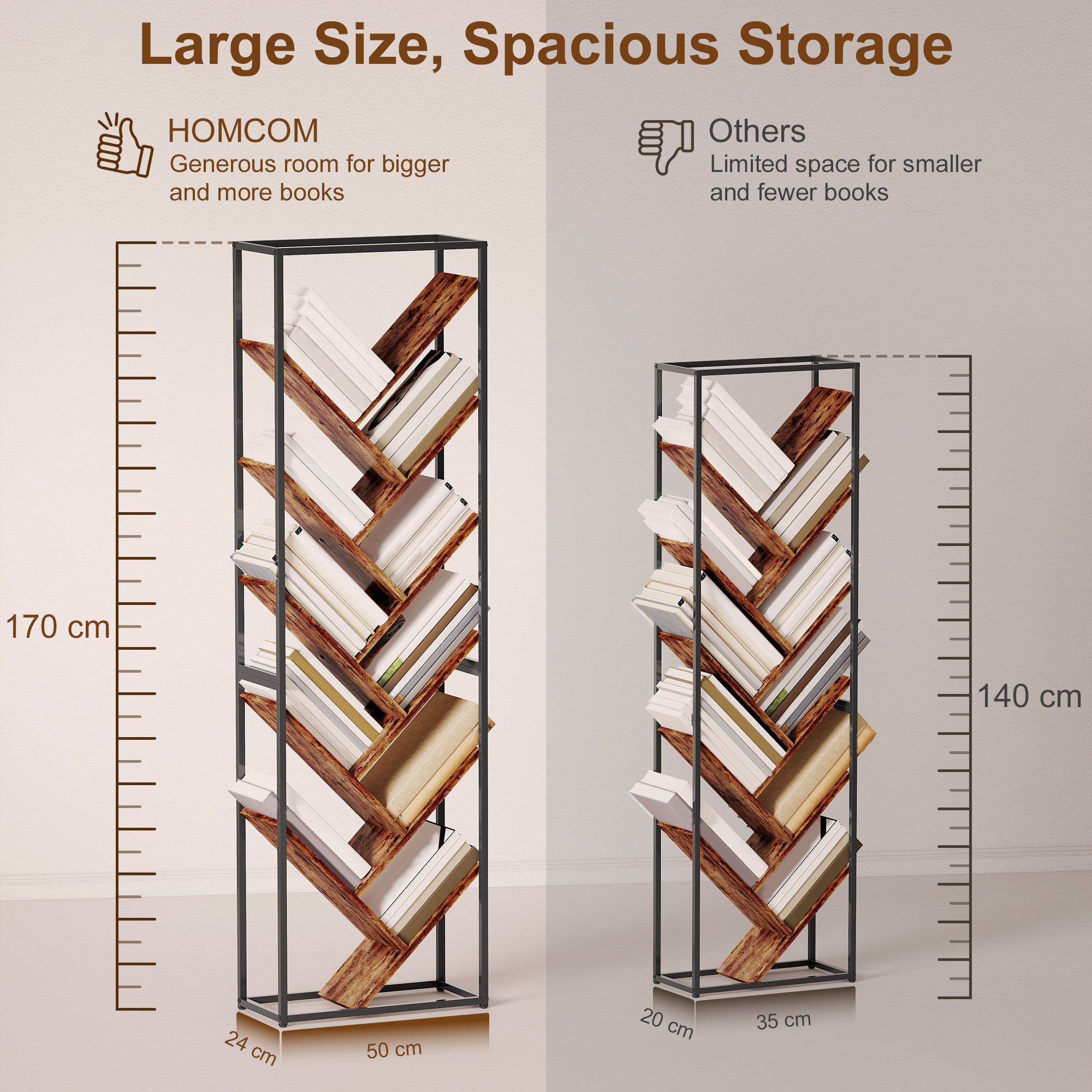 VELVEN 10 Shelf Industrial Style Bookshelf -Brown and Black
