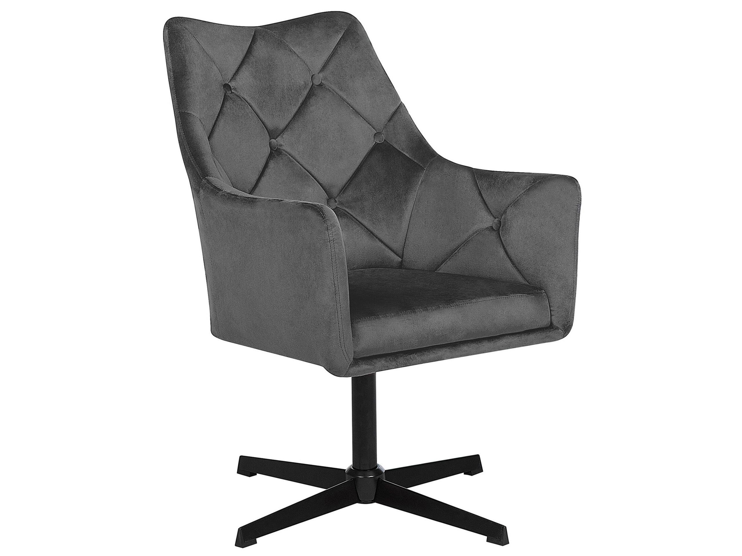 Elevate your surroundings with this elegant armchair. Upholstered in butter-soft velvet and thickly padded cushioning on the arms, back and seat, it is simply decadent. Finished in dark grey and button tufting, it adds an air of sophistication to glam and art deco style interiors. Place it in your home office, living room or nursery and sit back and enjoy its beauty and comfort. Details: Color: Grey, Black. Main material: Velvet. Additional material: Metal. Material Composition: 100% Polyester Weight: 12 Assembly: Legs to be Fitted Weight Capacity: 150 Seat Height: 41