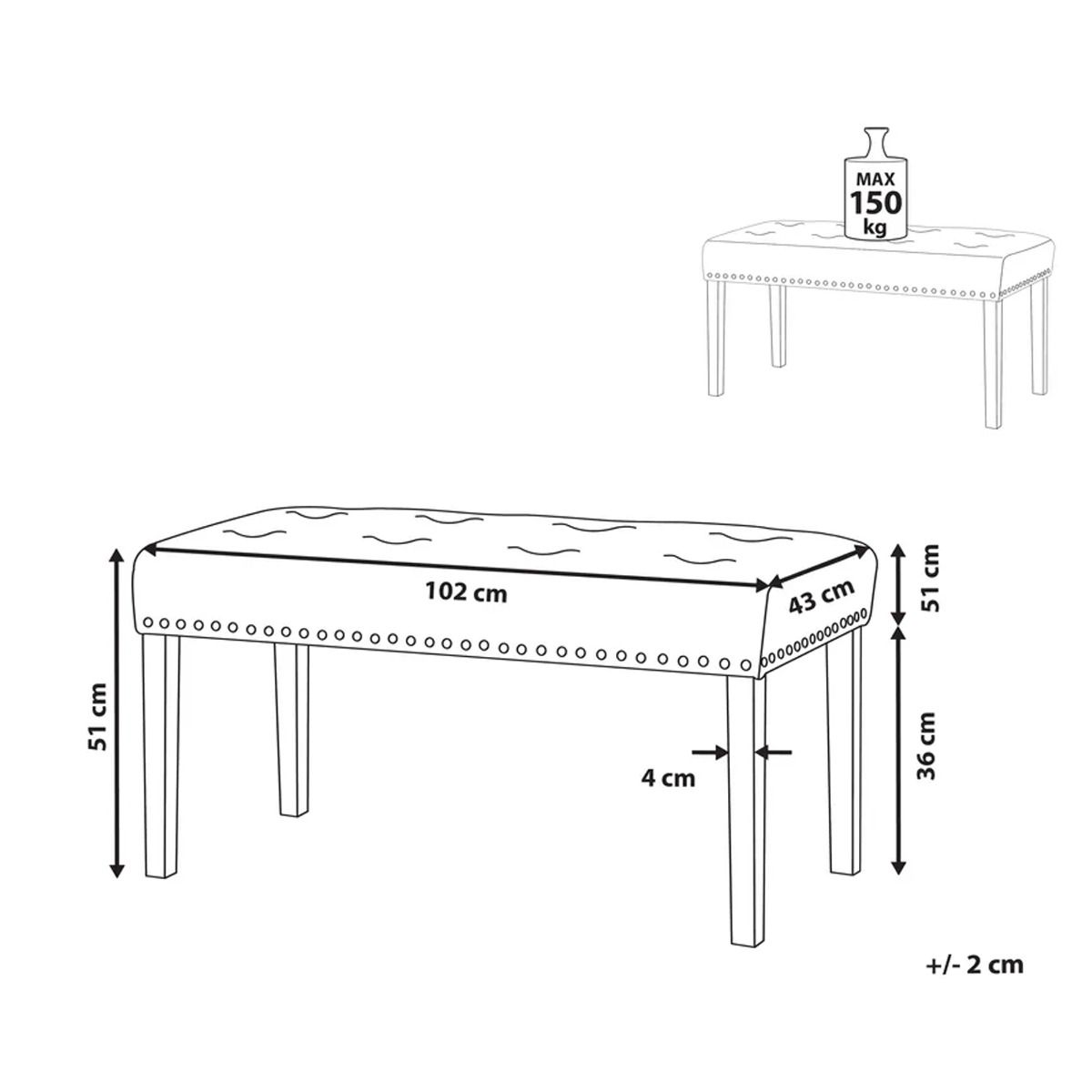 Vintage bedroom bench that introduces old-time glamour to any interior. Thanks to its unique design, the piece beautifully decorates and highlights rooms in glam, modern and retro decor. The bench boasts soft, yet durable polyester velvet upholstery, embellished with a classic button tuft and glossy nailhead trim. The simple, straight legs add a minimalist touch to the overall appeal of the piece, and contrast the ornate seat. Details: Color: Green. Main material: Velvet. Additional material: Pine Wood. Material Composition: 100% Polyester Weight: 10 Assembly: Legs to be Fitted Wood type: Pinus massoniana Wood Origin: China Weight Capacity: 150 Padding Thickness: 15