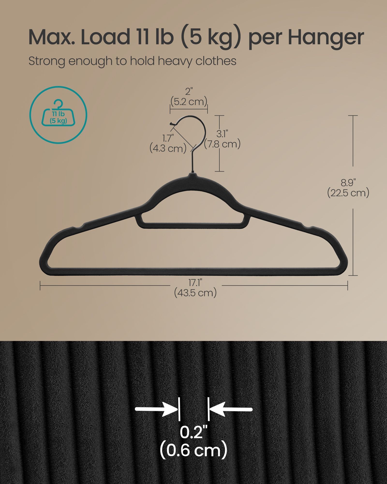 Velvet Coat Hangers - LUMZA Set of 50 with Tie Bar Non-Slip - Black