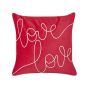 This plush, soft and pleasant to touch cushion is going to add a romantic vibe to your living room or bedroom. Handmade out of velvet, the piece features embroidered writing, on a rich, red background - such a combination will surely draw the attention of your loved one. The pillow is easy to clean thanks to the removable cover, and itself is very durable, making it a long-lasting decoration in your home. Details: Color: Red, White. Main material: Velvet. Additional material: Cotton. Material Composition: 100% Cotton Assembly: Does Not Require Assembly