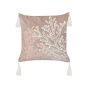 Velvet Cushion Coral Motif 45x45cm Taupe