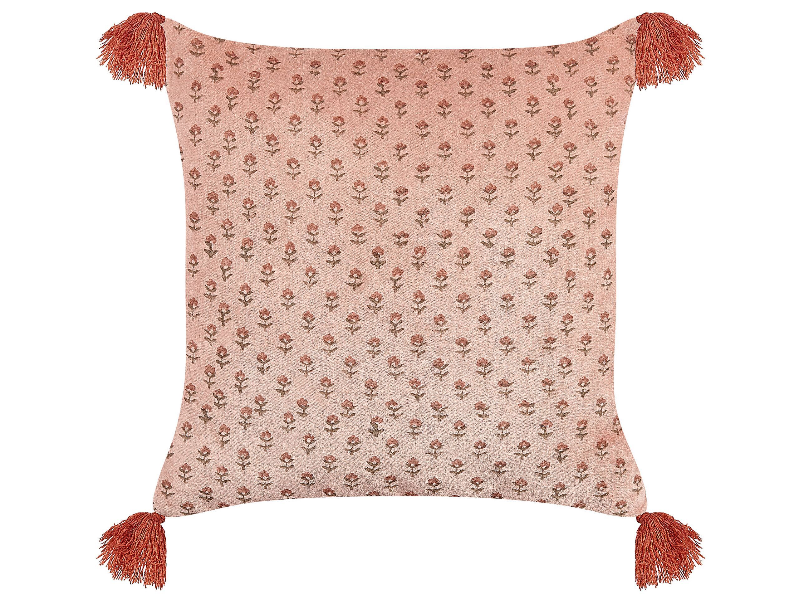 Velvet Cushion Floral Motif with Tassels 45x45cm Pink